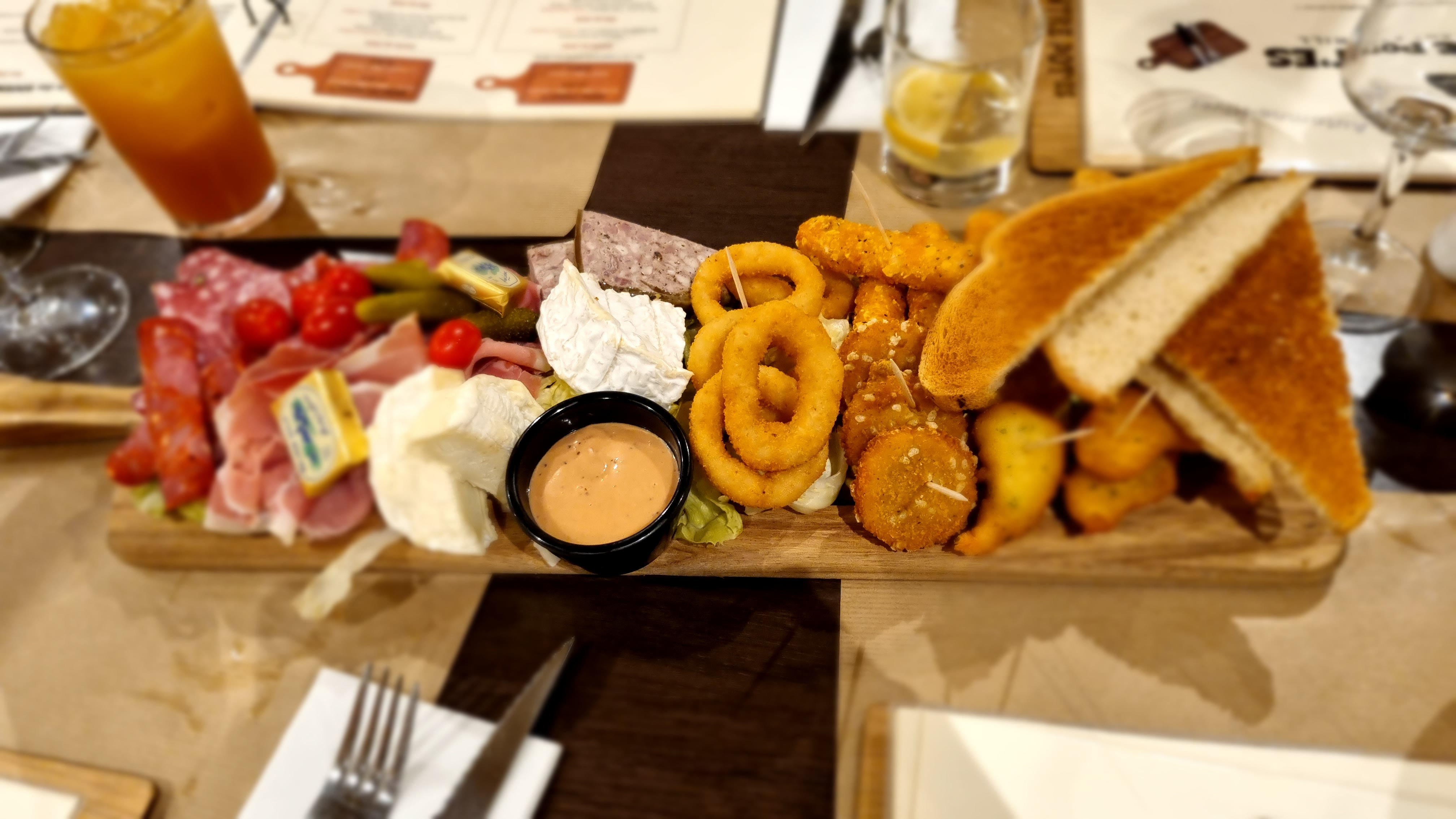 Repas et service très bien je recommande vivement juste l'espace enfant est sommaire. Les planches à partagées sont super copieuses