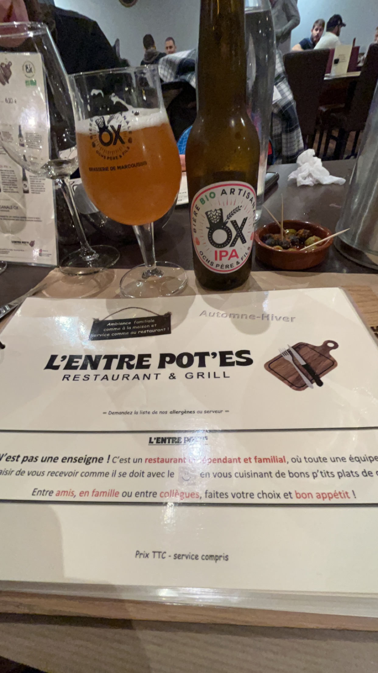 Excellent et généreux repas, personnel souriant et réactif, une haute et constante qualité de prestation, et un bon prix; font que je recommande vivement l'Entre Pot'es de Bretigny, et j'y retournerai avec grand plaisir !