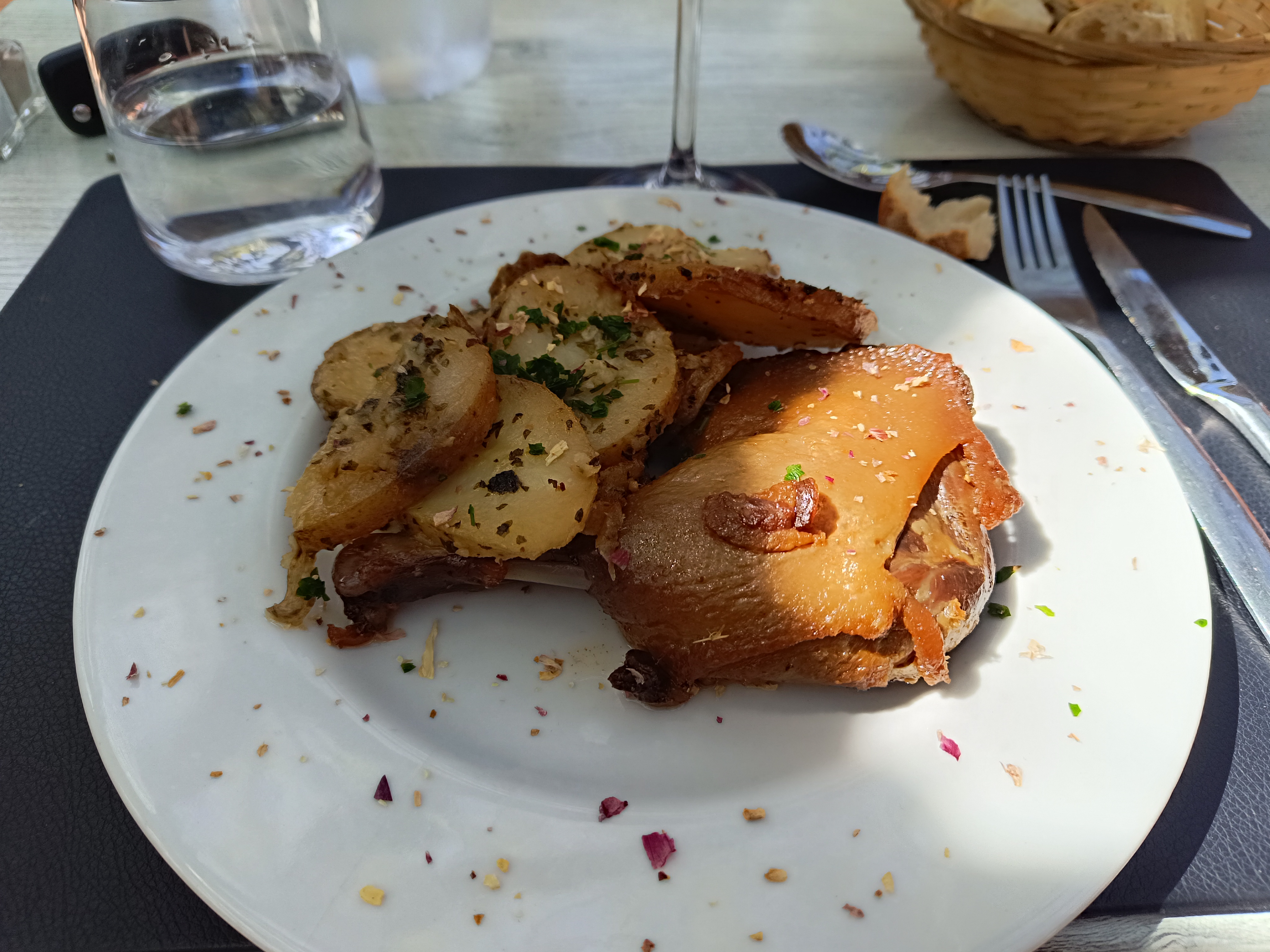 Repas agréable en terrasse. Excellent confit de canard accompagné d'un grave qui se mariait très bien... et un accueil chaleureux !