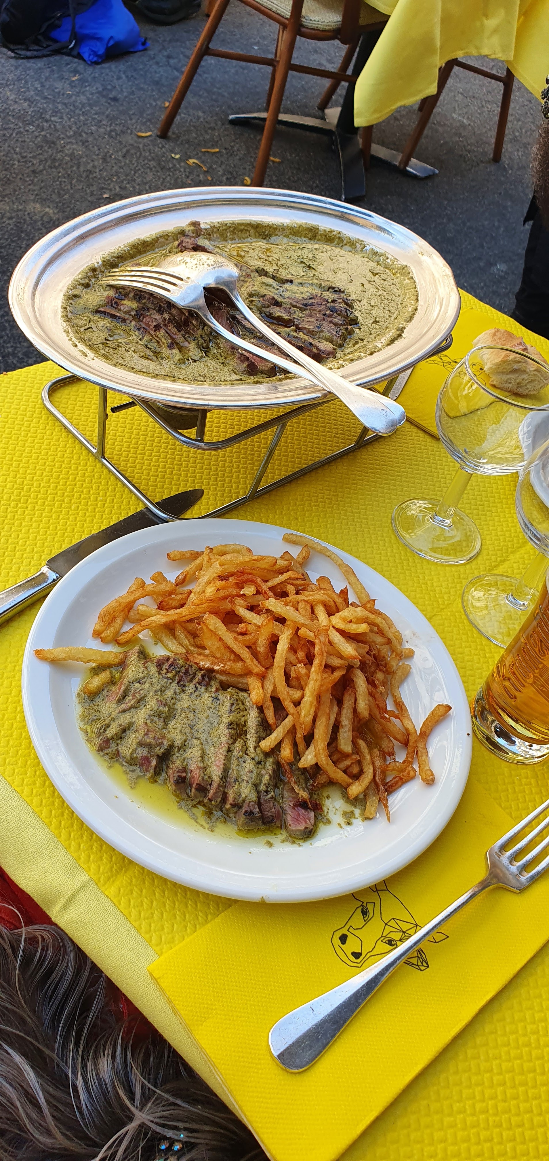 Très bonne viande et des frites à volonté excellentes et bien sûr la sauce impossible à reproduire. Prix en augmentation de 20% par rapport à l'année dernière soit 22€ le menu sans dessert , ni boisson. Il vaut mieux arrivé à midi moins le quart si vous ne voulez pas faire trop de queue à l extérieur.