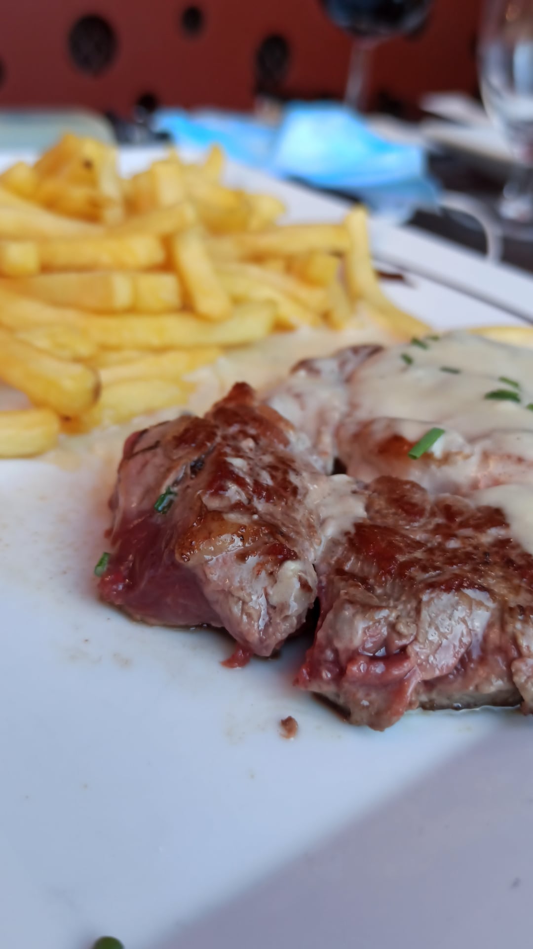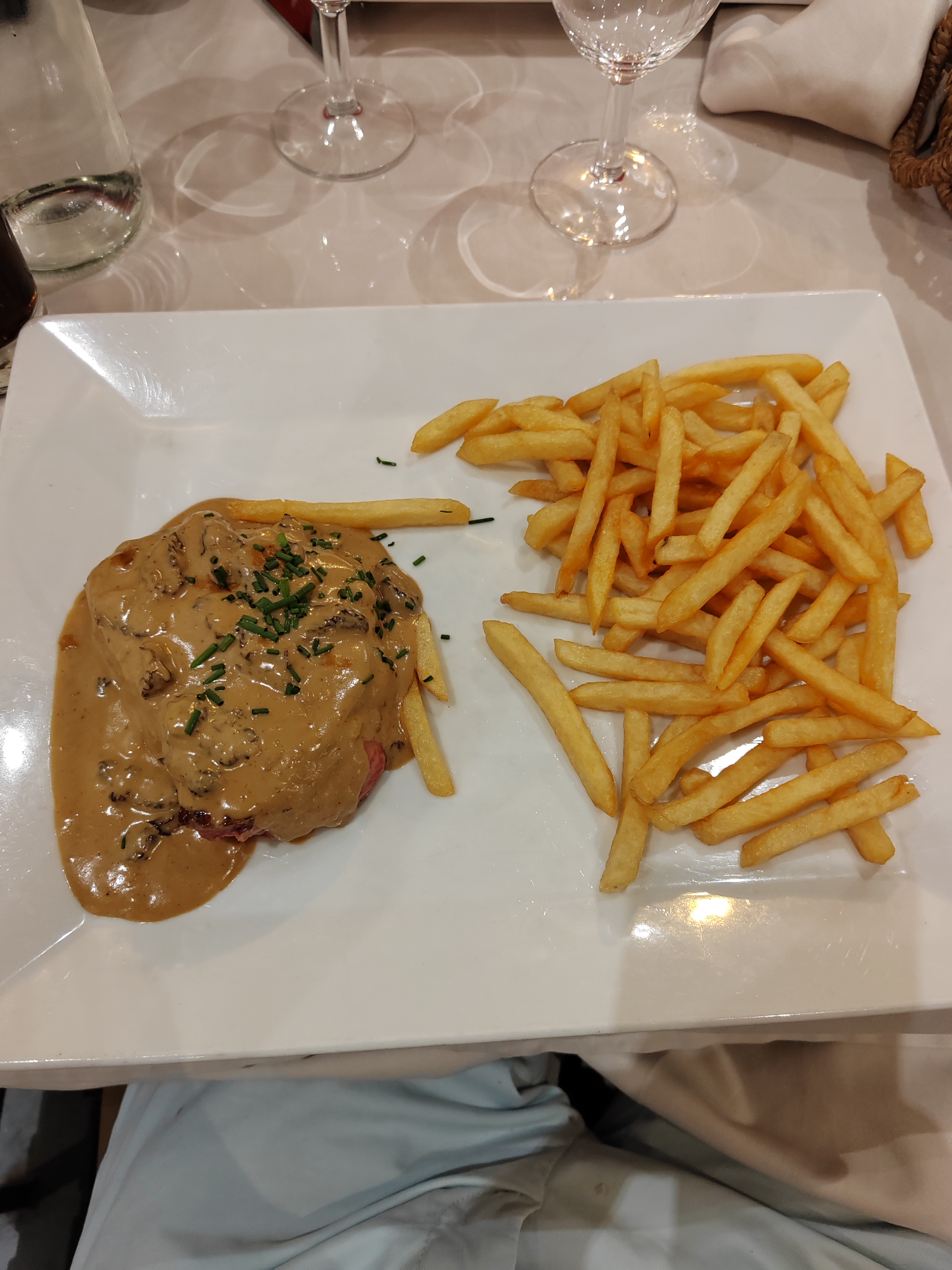 Vous voulez manger un bon steak frites salade ? Alors je vous recommande ce restaurant. J'ai pris un super filet de bœuf aux morilles. Un vrai délice des papilles. Accompagné d'un petit verre de beaujolais nouveau. J'ai terminé avec un tiramisu fait maison . Il était tellement bon que j'ai oublié de prendre la photo, oups 😂. Le serveur ? Tout simplement au top. Au petit soin et très gentil. En conclusion, ce n'est pas la première fois que j'étais dans ce resto et cela ne sera pas la dernière. Je recommande fortement 👍 Bravo à toutes les équipes 👏