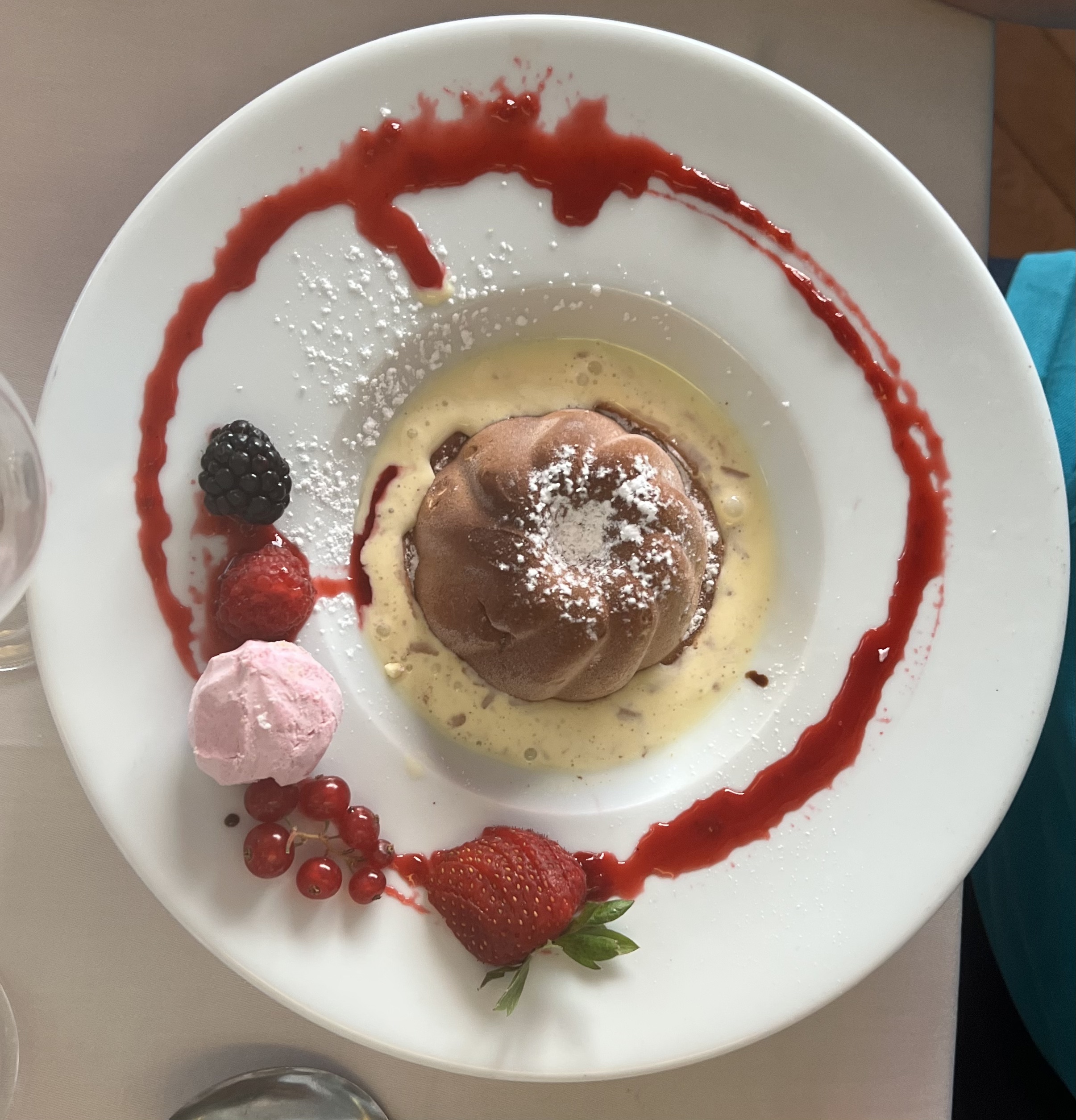 Super bon! J'ai pris une entrecôte sauce poivre avec des frites 🍟😋. Et en dessert les desserts des trois chocolats 🍫. Personnel simpatique! Je recommande 👍