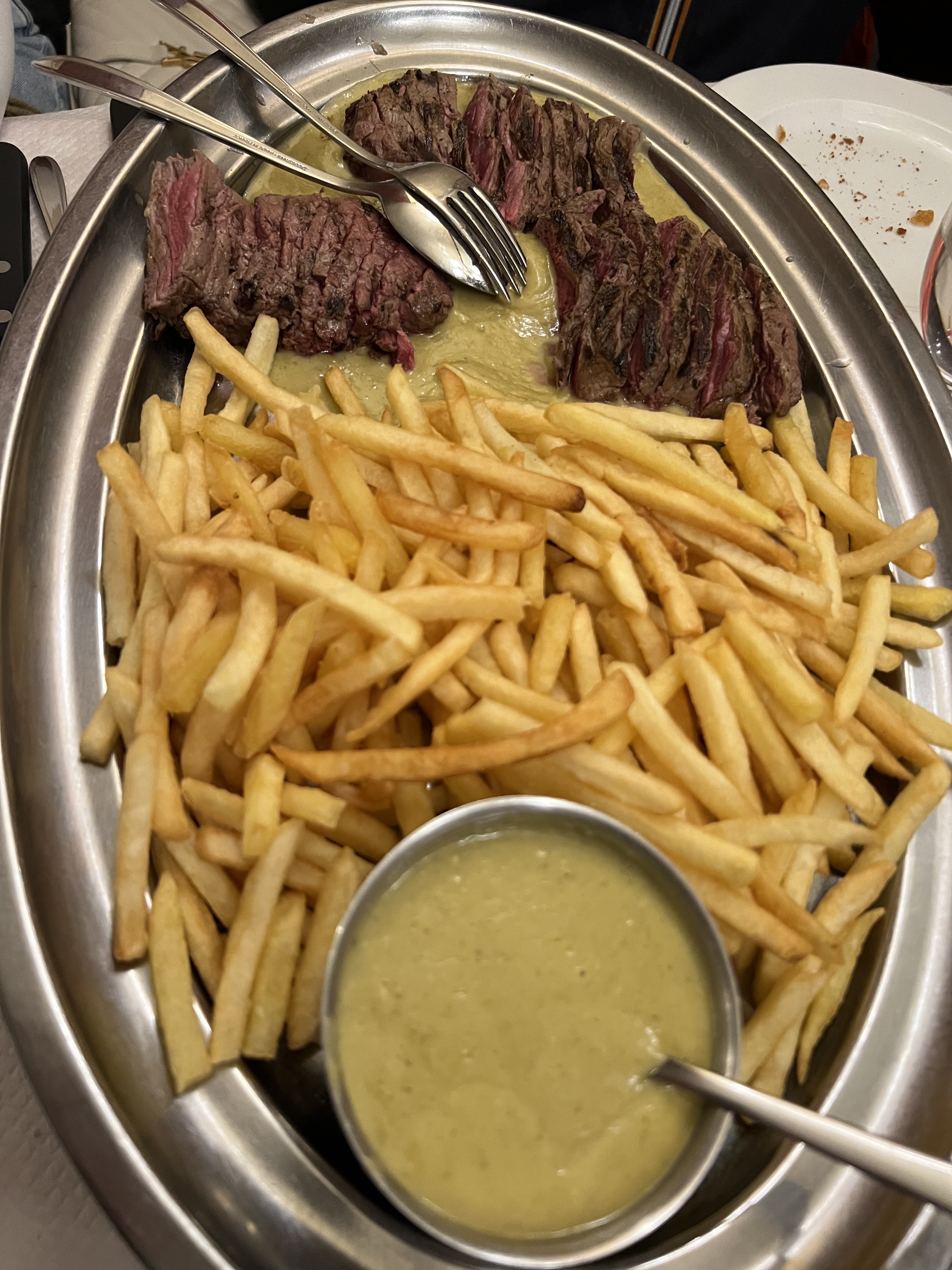 Je ne sais pas quoi je m’attendais en testant cette adresse très connue des locaux et touristes (surtout touristes). Entrecôtes bien réalisées, frites à volonté. Une expérience à faire entre amis, si vous arrivez à surmonter la queue dehors.