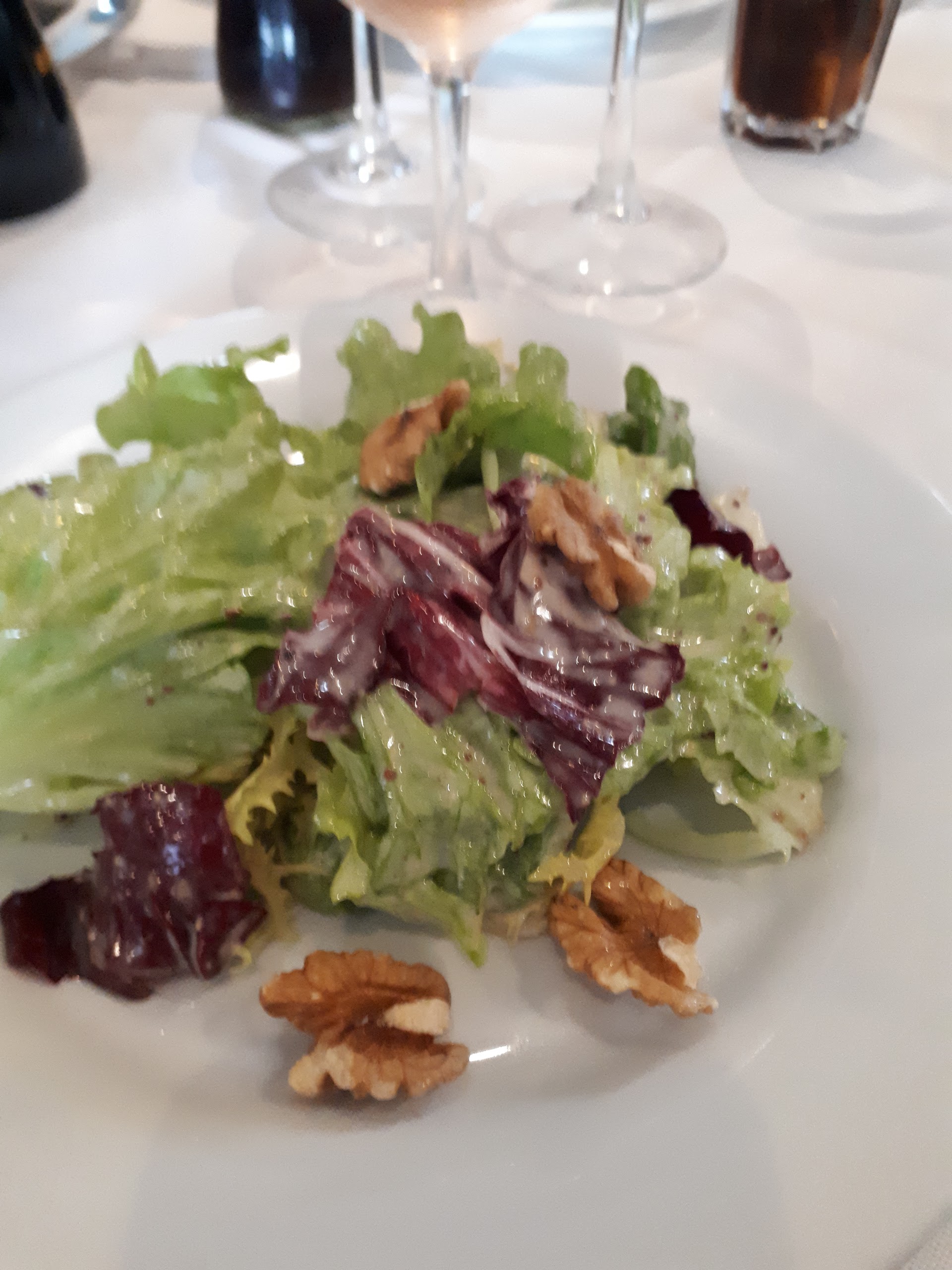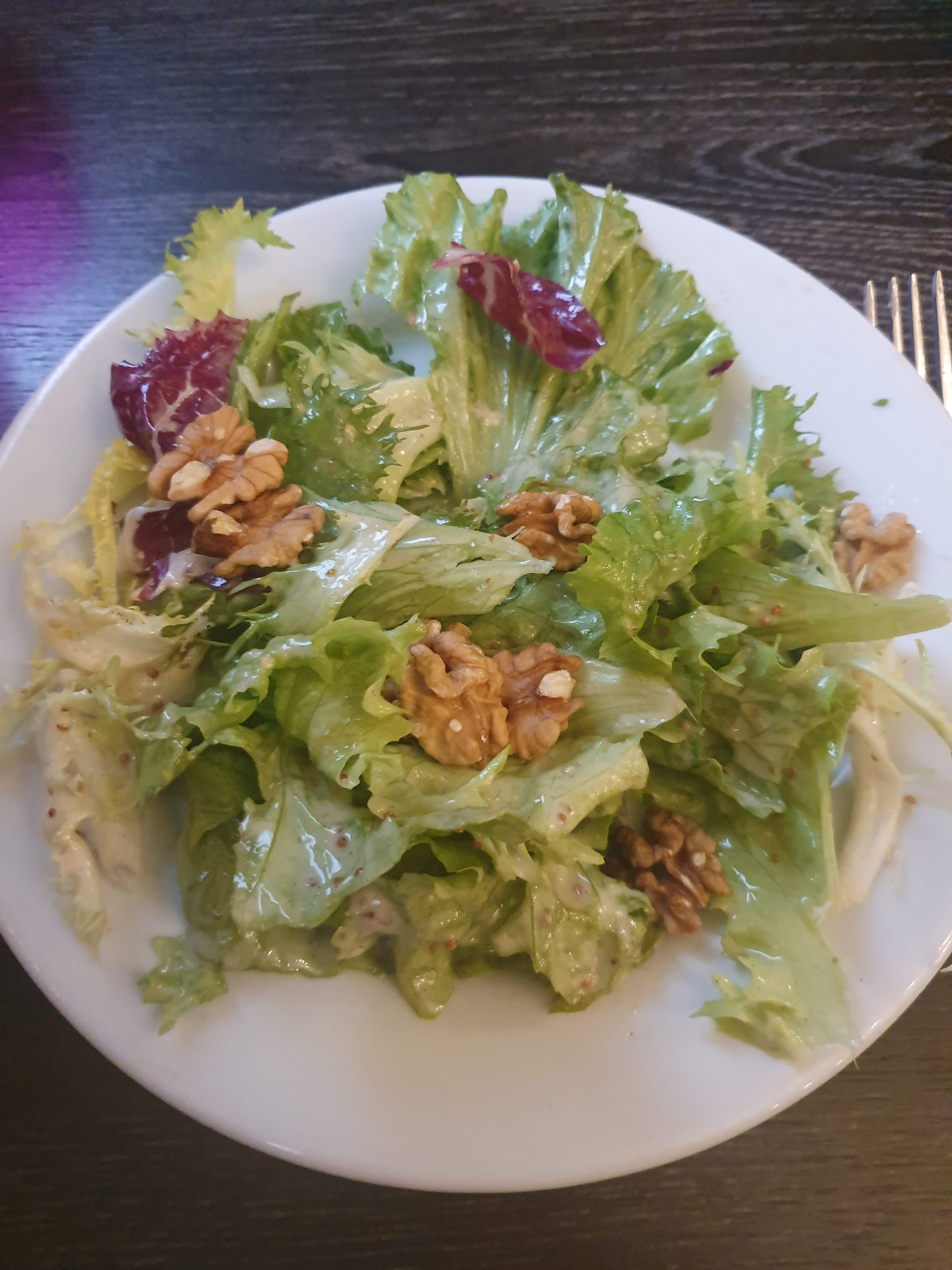 Palme de la pire salade de ma vie... un gros paquet de feuilles de salade avec deux ou trois accompagnements sur le dessus, le tout nageant dans une sauce infecte probablement provenant d'une boîte de conserve... le tout à prix d'or !