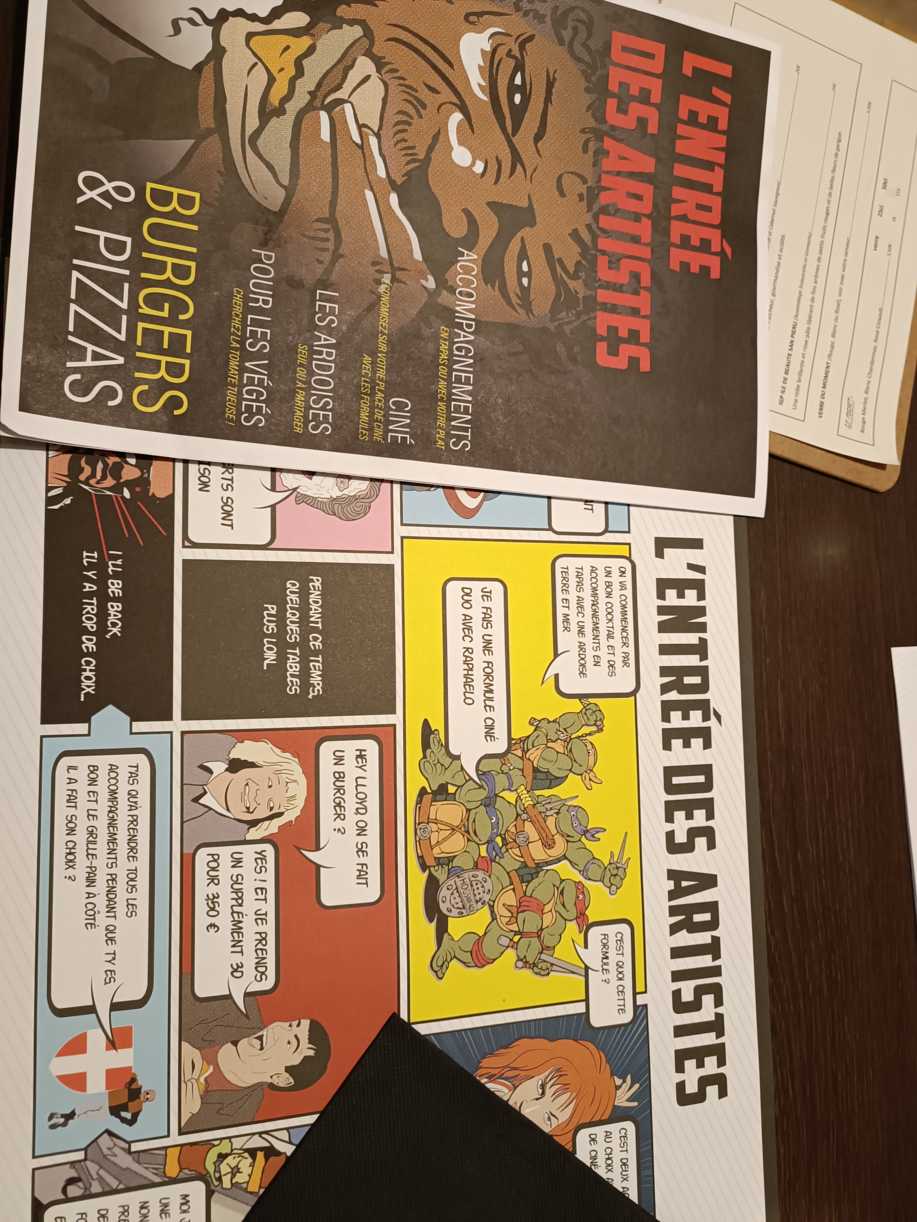 Deux étoiles pour ce gentil serveur qui nous as bien reçu Les plats n'était pas bon, pas fait maison, une présentation limite limite Ce pauvre monsieur était presque gêner de venir débarrasser la table au vu de ce qu il restait dans les assiettes L'endroit est pourtant original et très bien placé pour se faire un ciné avant ou après Les tarifs restent quand même très corrects Et petit plus à l'attention du restaurant; nettoyez les cartes de boissons, toute collante c'est pas top top Malheureusement nous ne reviendrons pas