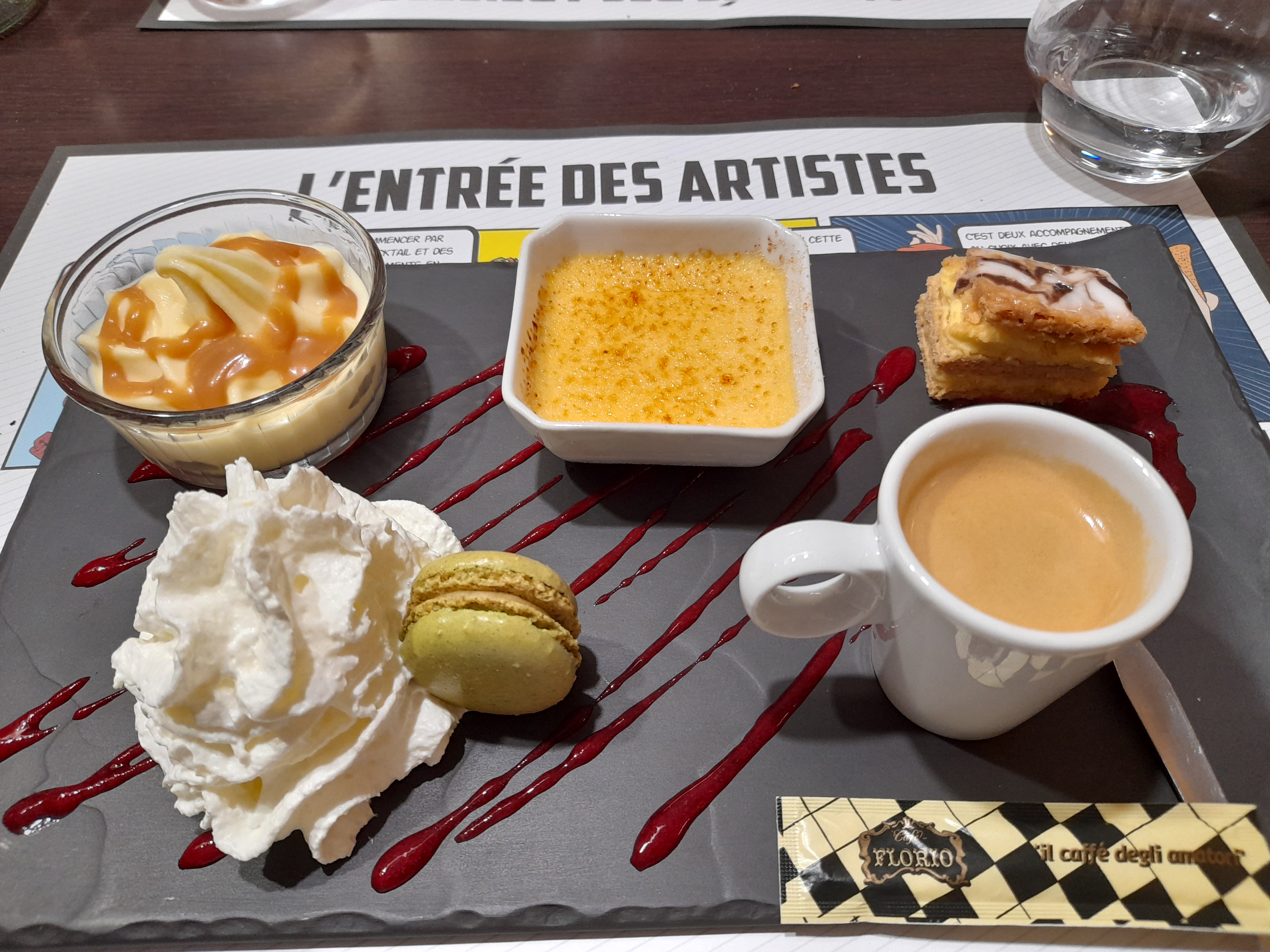 Si vous cherchez une expérience culinaire de cinéma, vous devez essayer la brasserie-pizzeria l entrée des artistes .Leurs plats divergent entre pizzas, viandes et poissons sont délicieux et leur viande est de qualité supérieure notamment les brochettes ainsi que les sauces . Vous ne pouvez pas vous tromper avec leur sélection du café gournand À revenir et merci encore pour l accueil!