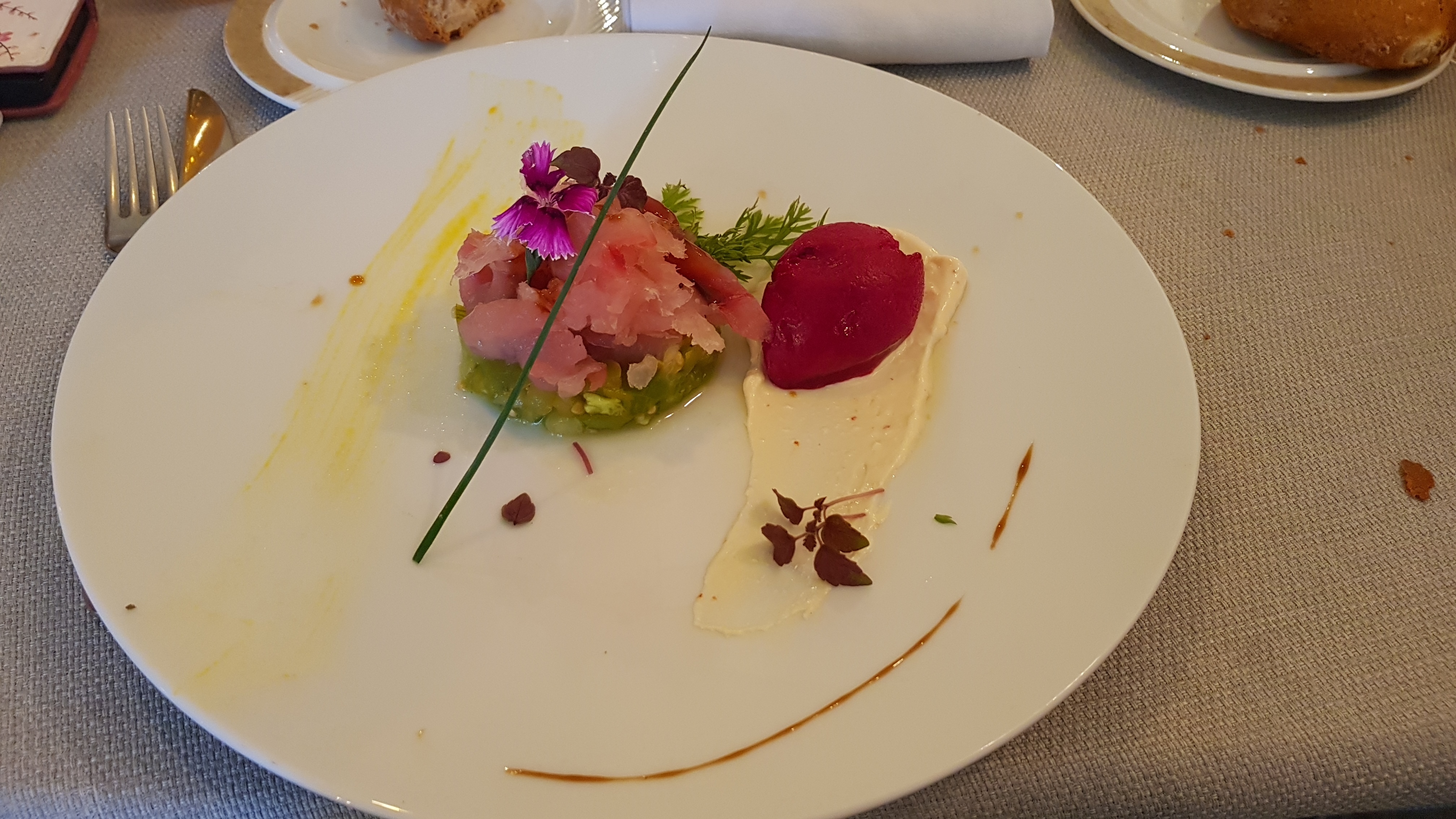 Quelle belle surprise !! Beau à regarder délicieux à déguster.. Service sourire et gentillesse ! Seul petit bémol quelques degrés en chaleur sur le plat principal seraient bienvenus