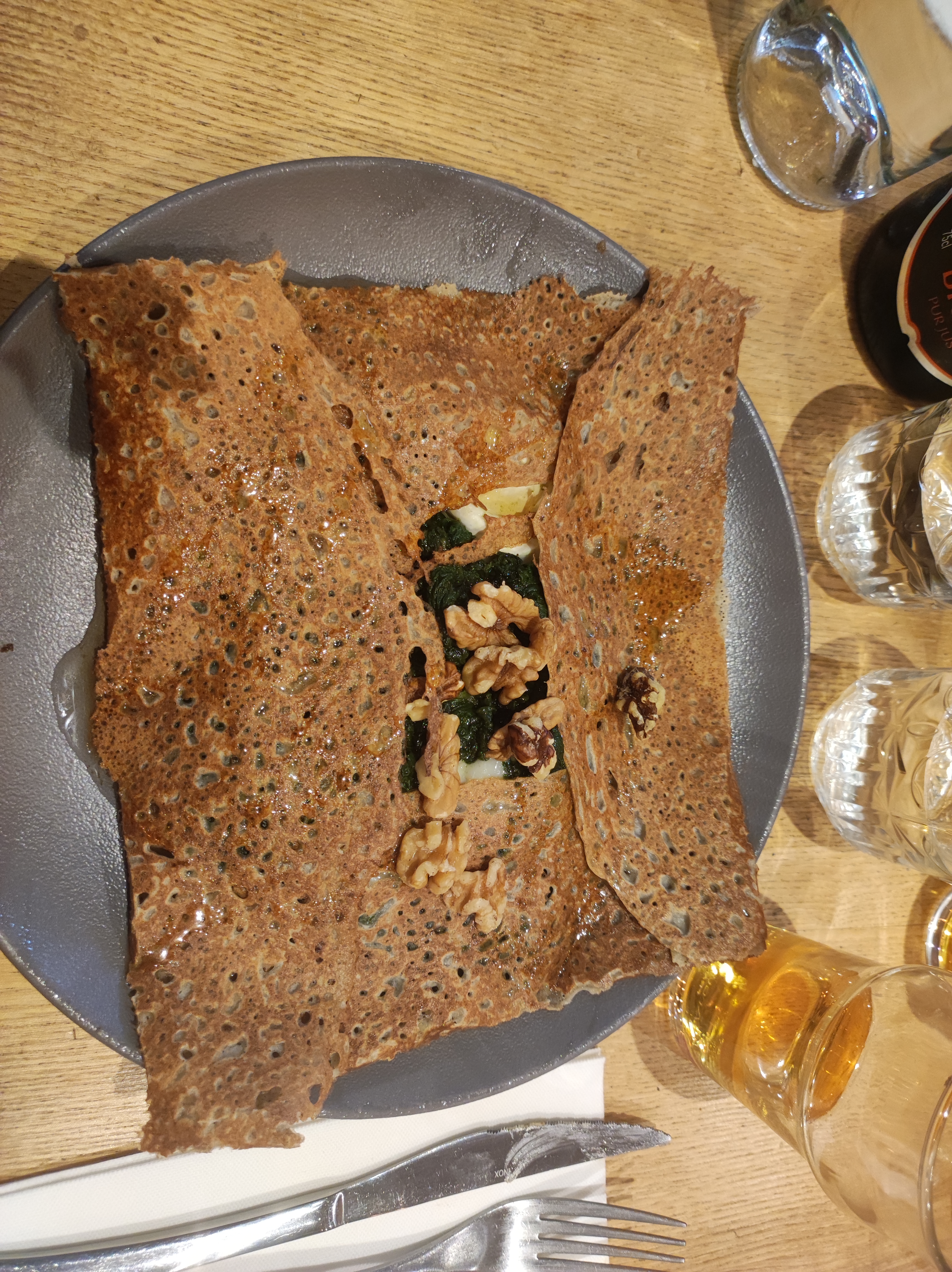 Pour un petit creux après une marche c'était vraiment correct. Le tapas breton était bien (la rillette de thon était un peu trop liquide si on veut chipoter. La crêpe au chèvre et aux noix était vraiment TRES garnie en noix, un plus ou un moins en fonction des goûts :) .Prix raisonnable.