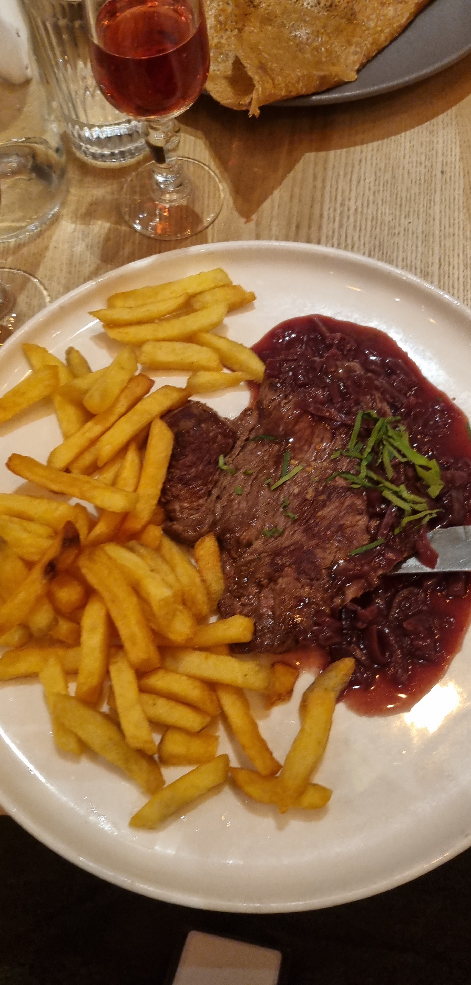Dîner sympa , plats copieux et faits maison sauf les frites petit bémol . Service agréable et rapide Bon rapport qualité prix