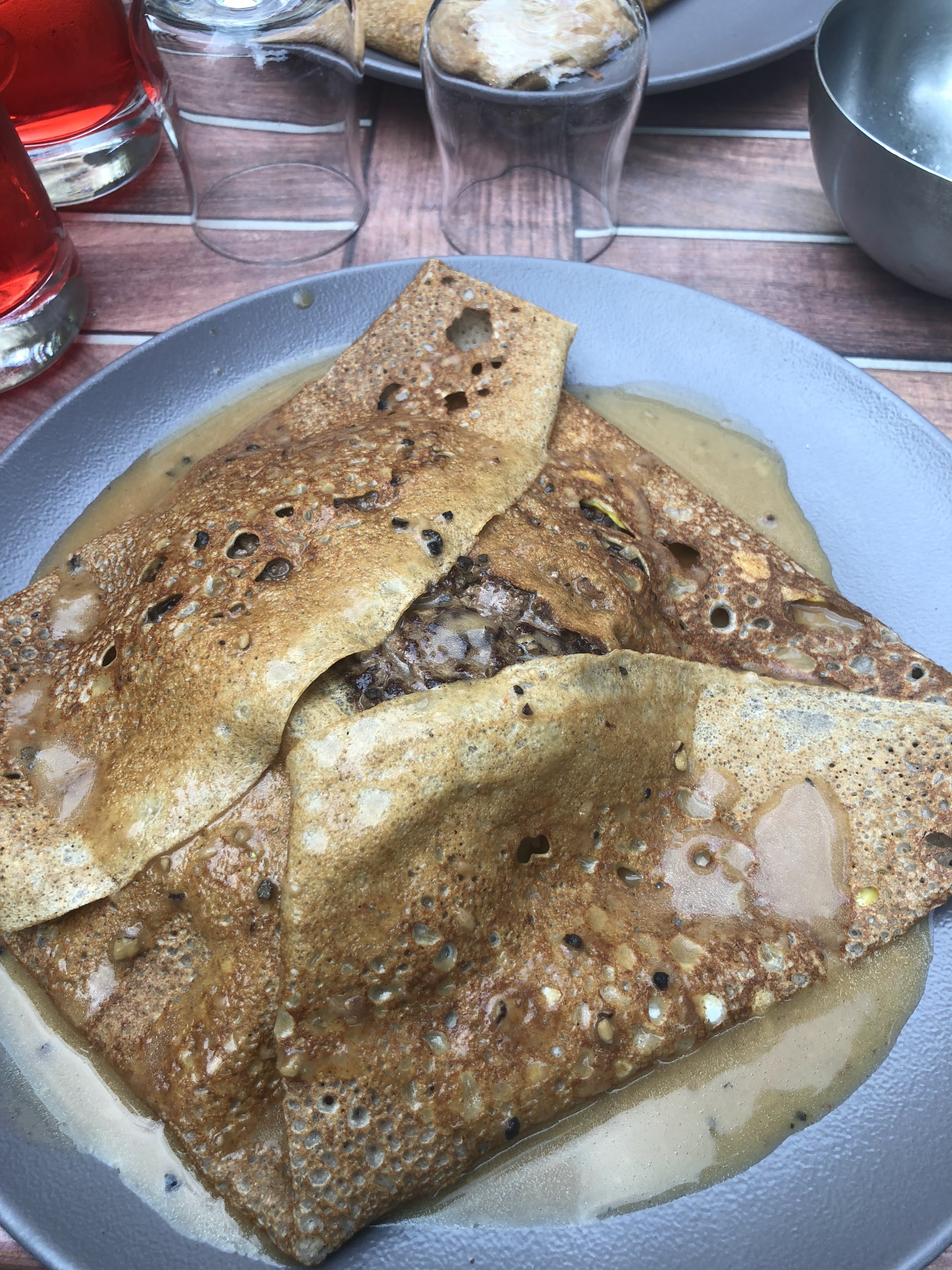 C'était super décevant. Je suis venu ici pour manger une crêpe mais ce n'était pas bon du tout. J'ai commandé la crêpe végétarienne composée de fromage de chèvre, d'œufs et d'épinards. Mais le fromage sentait un peu trop pour moi - ce n'est pas ce à quoi je m'attends du fromage de chèvre. Je sais que c'est la France mais c'était tout simplement trop. L'œuf était également encore gros et pas complètement cuit.