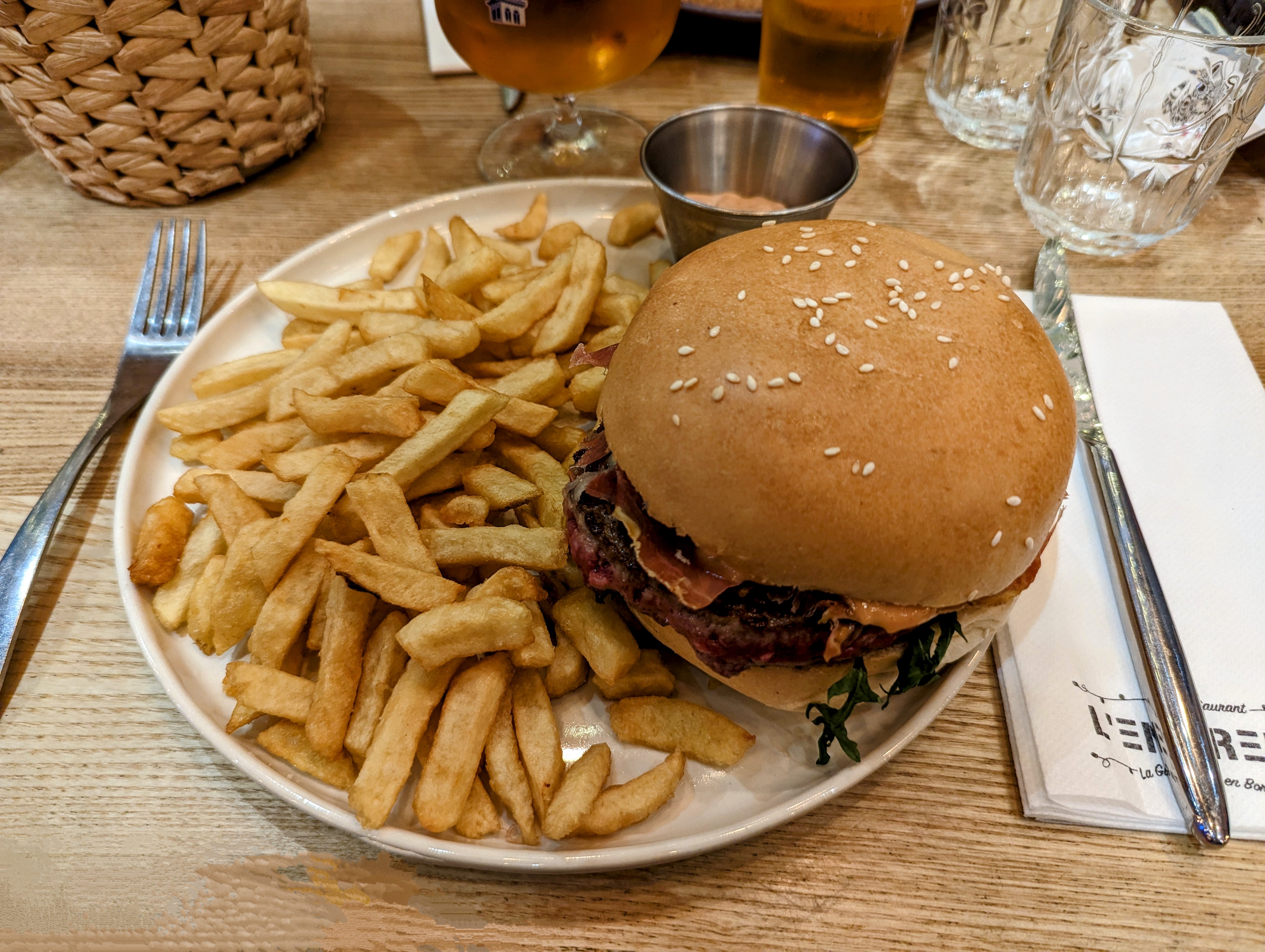 Un bon burger, de la viande charolaise, du reblochon,du jambon Serrano et des oignons confits. Dommage pour les frites un peu molles, mais cela reste tout à fait acceptable 😀.