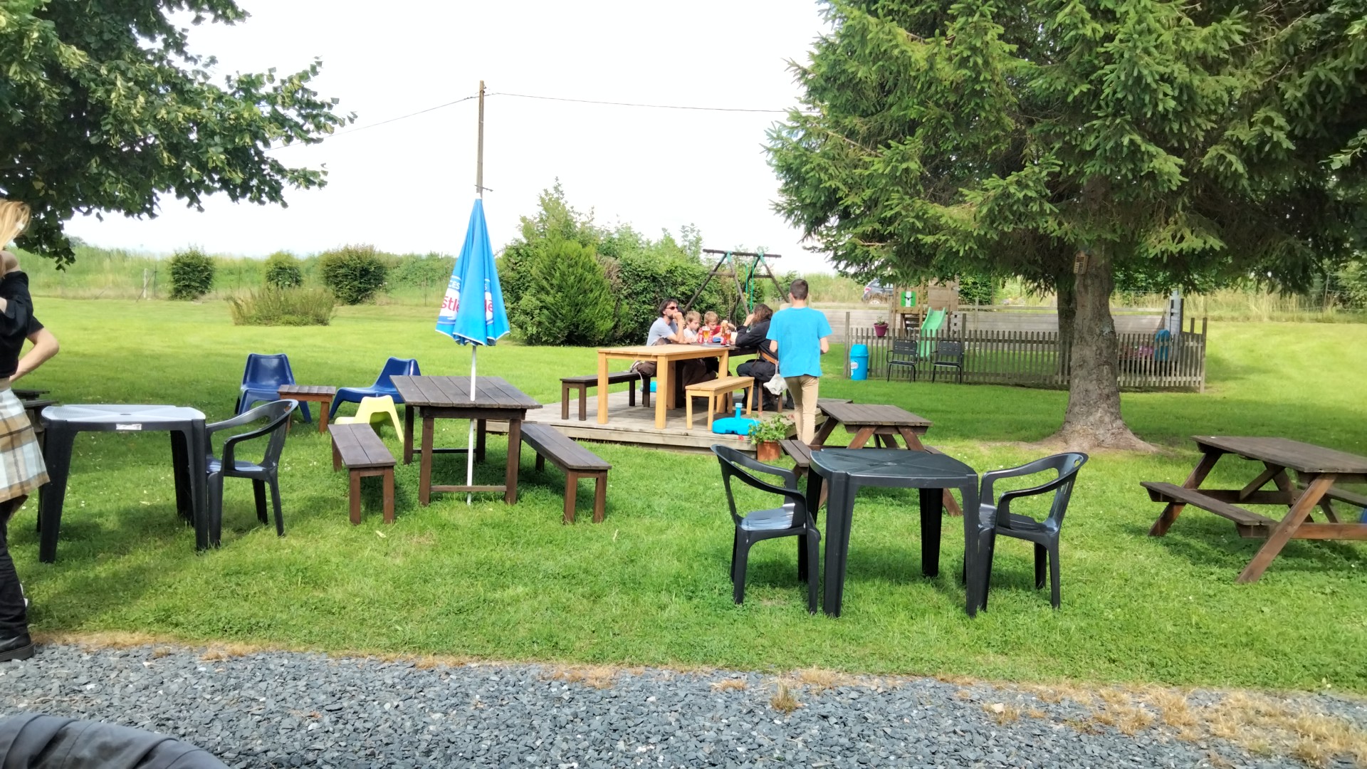 Un cadre sympa avec grand espace extérieur et jeux pour enfants. Accueil agréable mais on sent un manque de professionnalisme. La nourriture était décevante (viande pas très bonne, pâtes dures et collées comme si elles avaient passées la nuit au frigo) Finalement le menu à 14,90€ est cher pour ce que c'est, sans parler des boissons au prix fort (3,30€ pour une cannette de coca). Il y a des endroits bien mieux dans le coin.