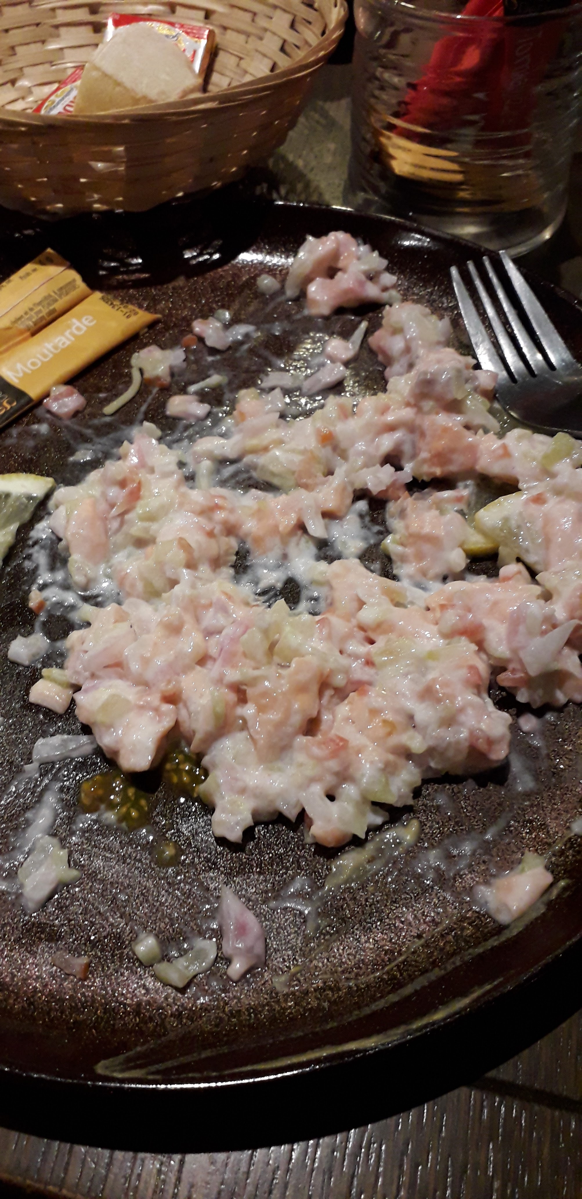 Très très déçue...commandé un gravlax de saumon et reçu un tartare de saumon à la crème avec 2/3 d oignons ou échalotes (rien à voir avec un gravlax que je consomme souvent ) . Je l ai signalé car je déteste les oignons/échalotes...on m'a répondu que c'était comme cela qu'il était servi ( non précisé sur la carte évidemment) ..donc pas mangé..