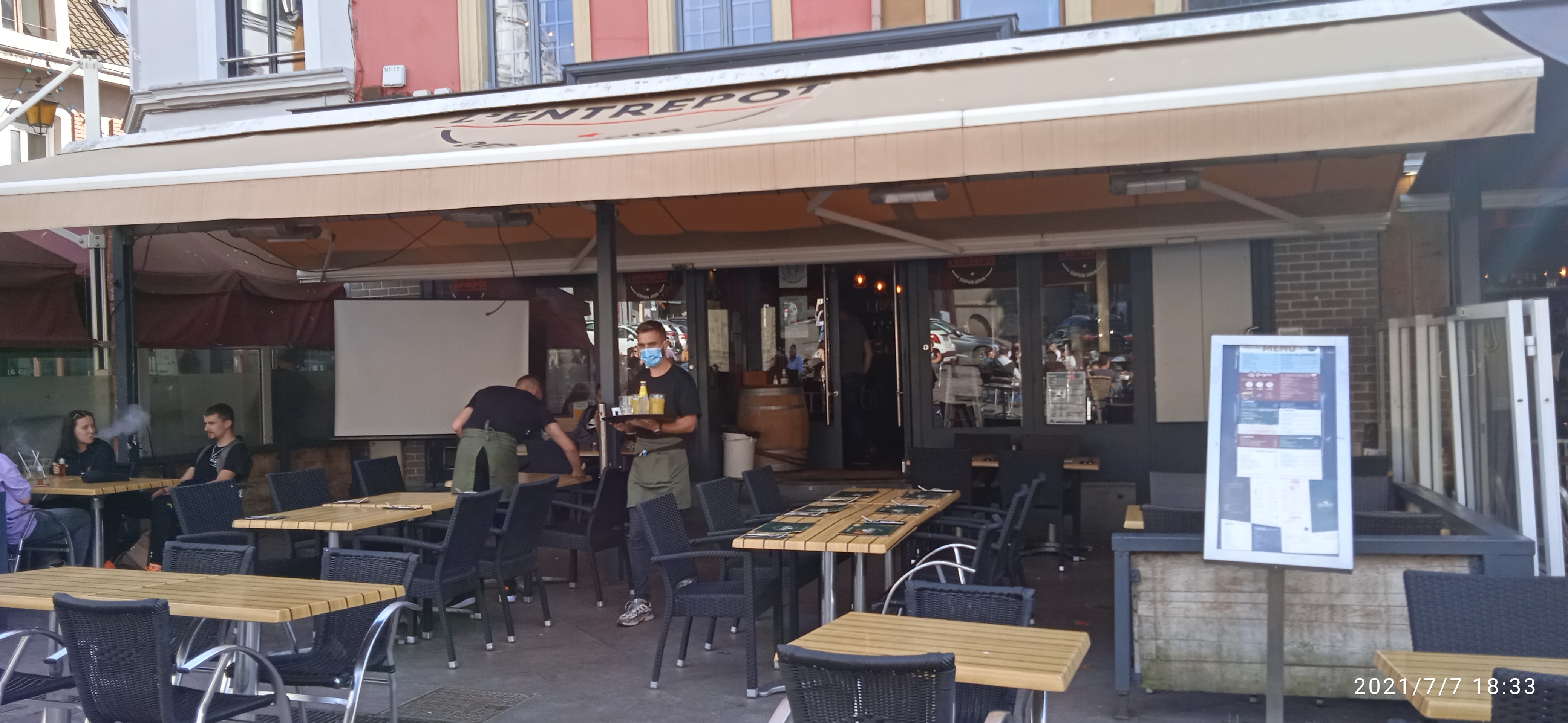 Bonjour, a l'entrepôt, on si s'en bien, car un accueil sympa et avec un sourire, on vous accueille dans différents menus de tout bonne qualité. Le service ainsi que la cuisine super, car je me suis régalée avec un délicieux plats de moule frites pour terminer par un délicieux café. En plus étant servi en terrasse, superbe vue des alentours de cette place. Je recommande, De Guy le belge en Motorhome.