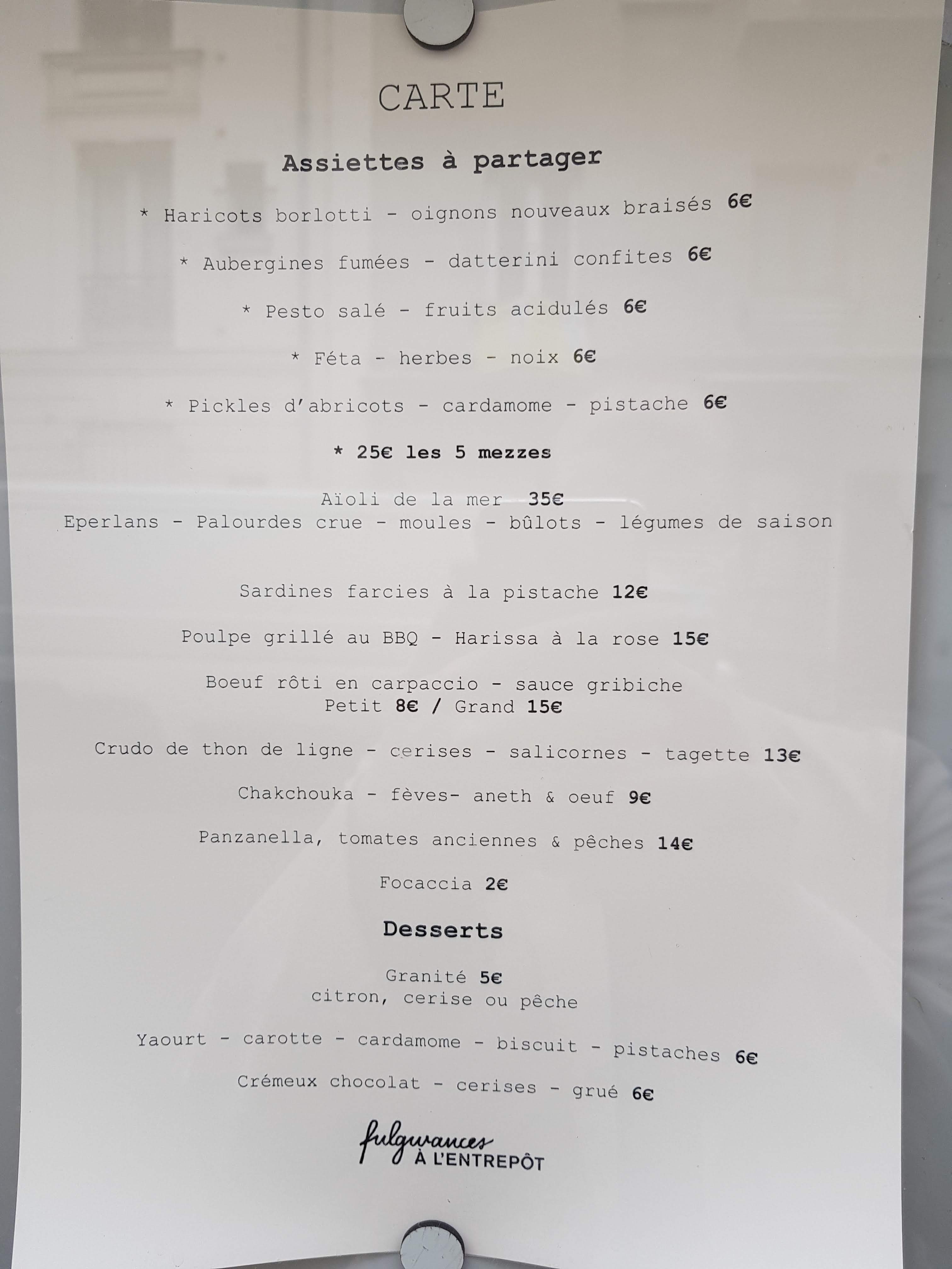 Quand Fulgurances s'installe quelque part, il faut y aller. C'est une règle pour qui aime manger ! Alors en plus, quand le lieu se révèle magnifique (verrière et terrasse arborée) ambiance tranquille et détendue et que la cheffe invitée du moment- Minou Sebahi - propose une carte riche en saveurs pour des tarifs raisonnables, on ne peut qu'applaudir. Idéal pour les sorties entre potes. Review complète sur le site restos sur le grill.fr