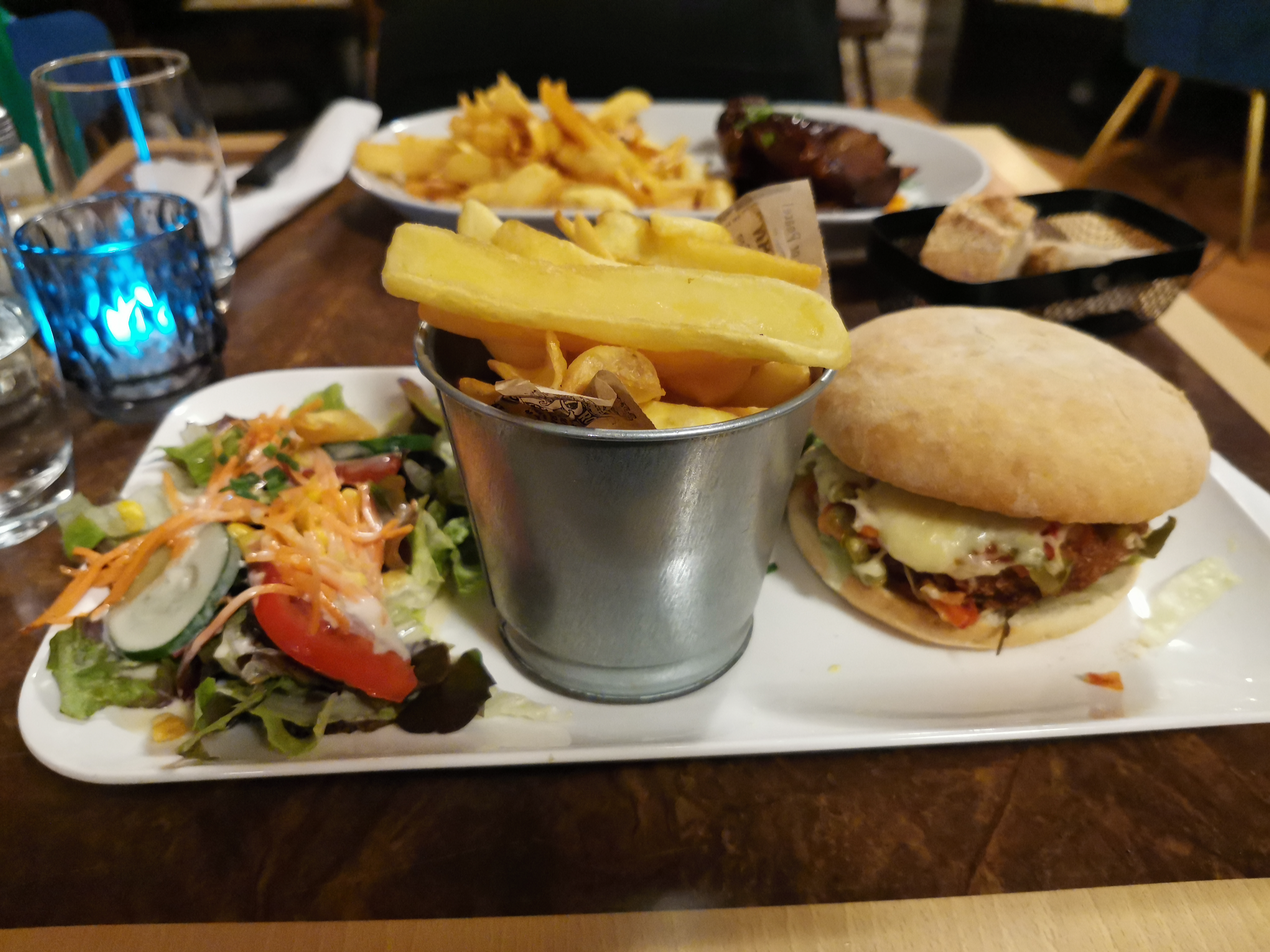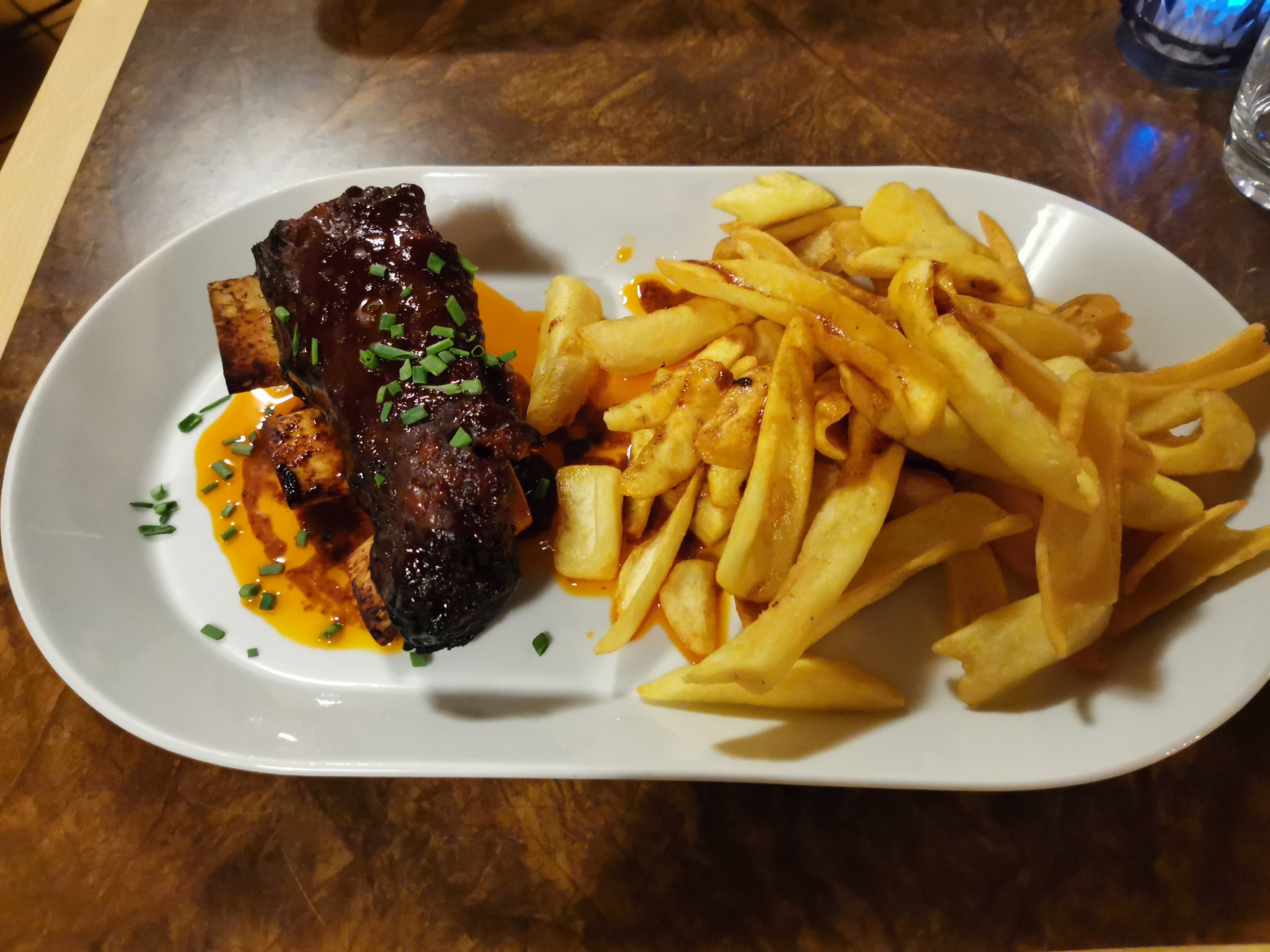 L'ambiance de la boutique est digne d'une auberge de ville médiévale. Le propriétaire était prudent, toujours sympathique et rapide. Les côtes sont vraiment une recommandation. La viande s'est détachée de l'os presque sans effort. Le goût de la viande était également tout simplement excellent. Le burger végétarien, en revanche, n’était malheureusement pas une réussite brillante. La galette était très molle et pâteuse et il manquait beaucoup de saveurs dans la composition. Il existe encore ici un net potentiel d’amélioration.