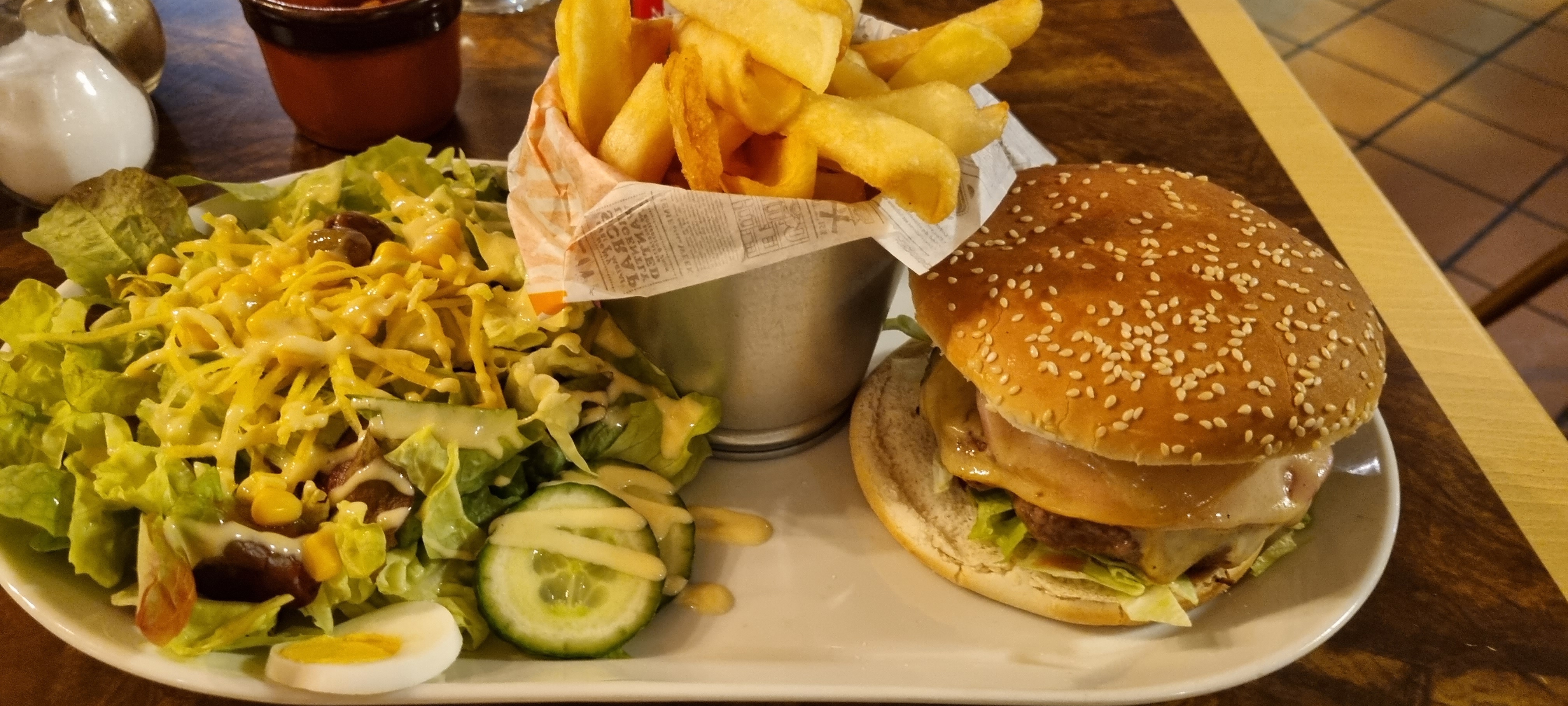 Très bon accueil. Nos enfants ont goûté le burger au sanglier et burger Rossini et ont bien apprécié. Nous avons pris les bouchées a la reine et avons été un peu déçus par le plat dans lequel il y avait peu de veau beaucoup de volaille et des spatzels trop cuits a mon goût. C'était par contre très copieux.