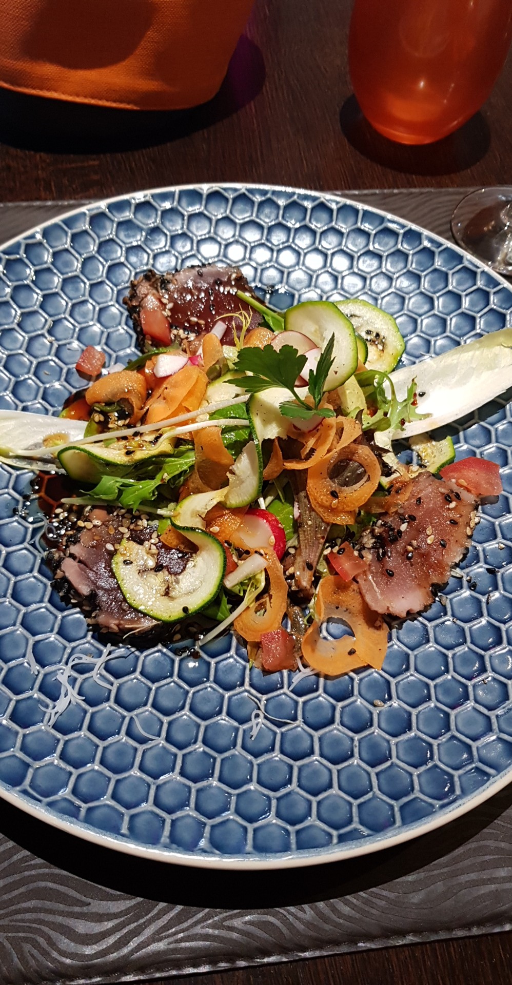 Restaurant trouver sur Google par l'intermédiaire des commentaires qui étaient très bon donc petite soirée programmée entre collègue dans se restaurant. Franchement pas dessus le service rapide, les carte sont sur tablettes se qui est très pratique et un flash code est disponible aussi sur téléphone. La présentation des plats vraiment extraordinaire . Et les plats sont très savoureux .a refaire sans hésiter . Concernant la déco intérieur aucun nous étions a l'expéditeur'