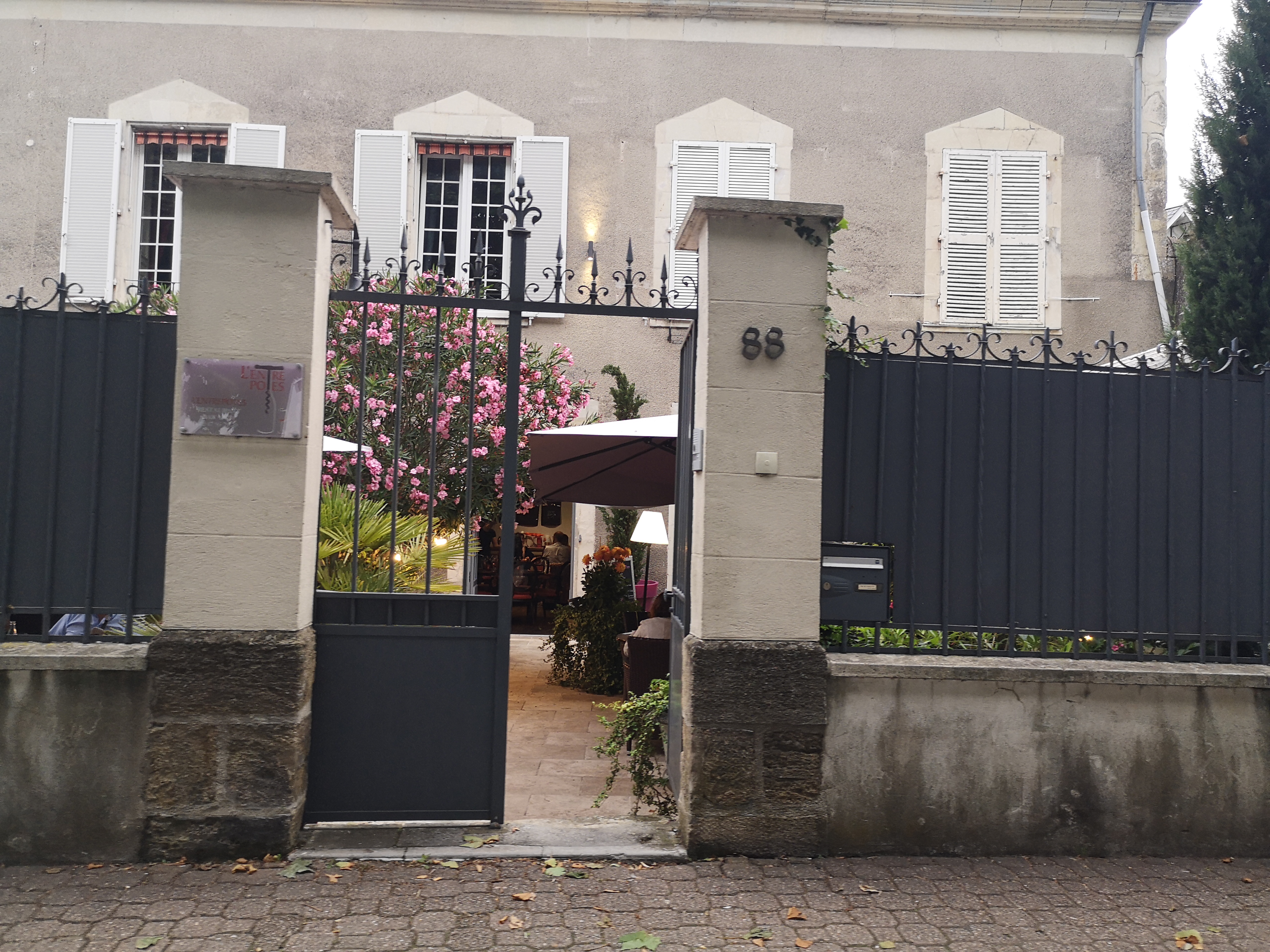 très jolie maison avec jardin intérieur,avec un laurier rempli de fleurs roses! malgré la route qui passe à côté caché par une clôture, le lieu est très agréable et convivial ! Nous avons pris le menu à 28 euros et nous n avons pas été déçu, nous sommes déjà venu il y a 1 an, la qualité est toujours là même ! ce fut un vrai régal, et la bouteille de vin de chinon sublime merci pour ce moment magique! ce restaurant est souvent complet(on comprends pourquoi) il vaut mieux réserver.