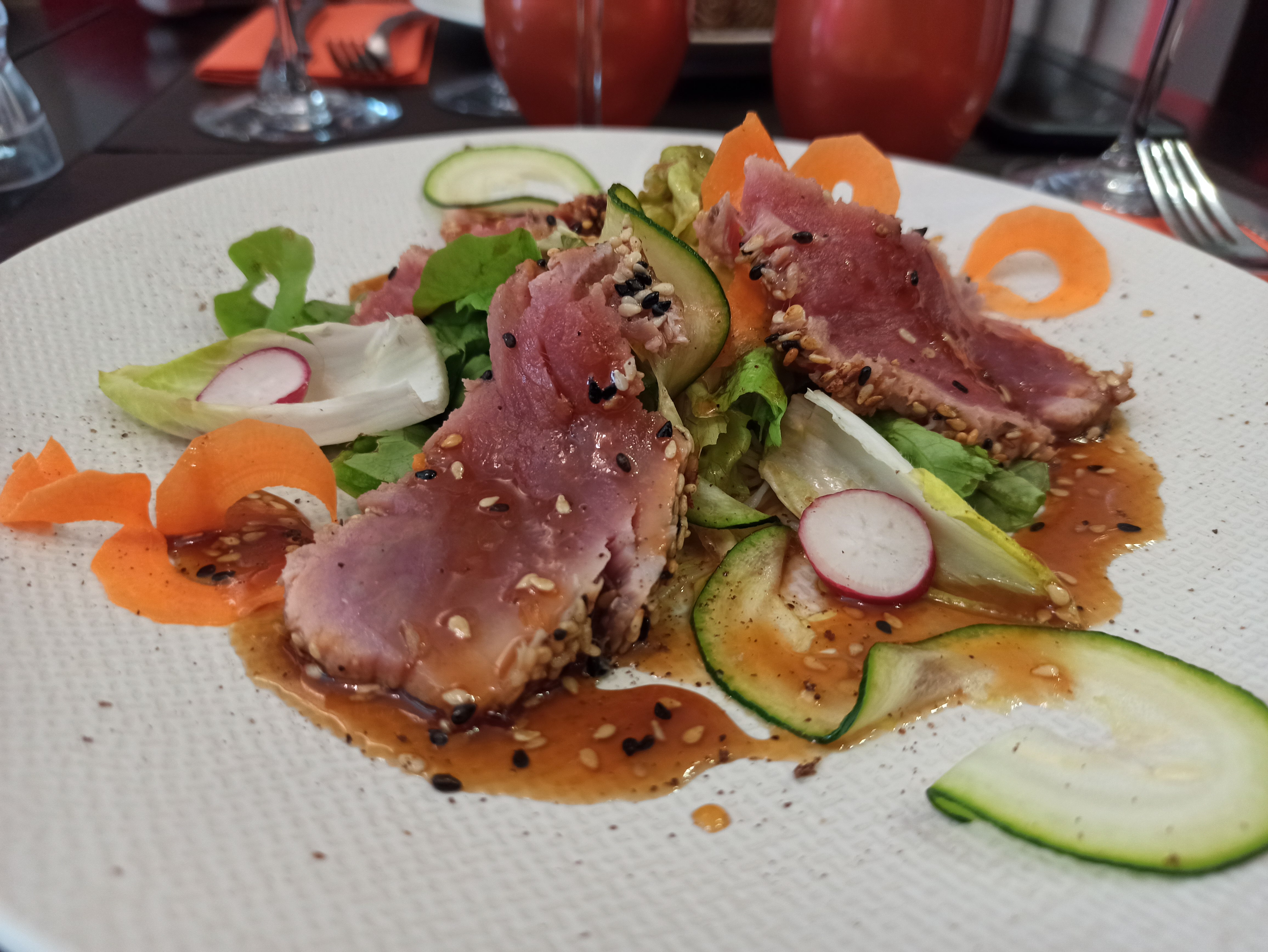 Notre petit groupe de 21 a passé un super moment, une bonne ambiance le soir en terrasse avec des recettes délicieuses comme le tataki de thon ! j'ai adoré son petit côté tendre et croquant sur les bords avec un assaisonnement complétement adapté. Le service est très agréable et de qualité . Je recommande vivement ce restaurant. Merci à cette belle équipe !
