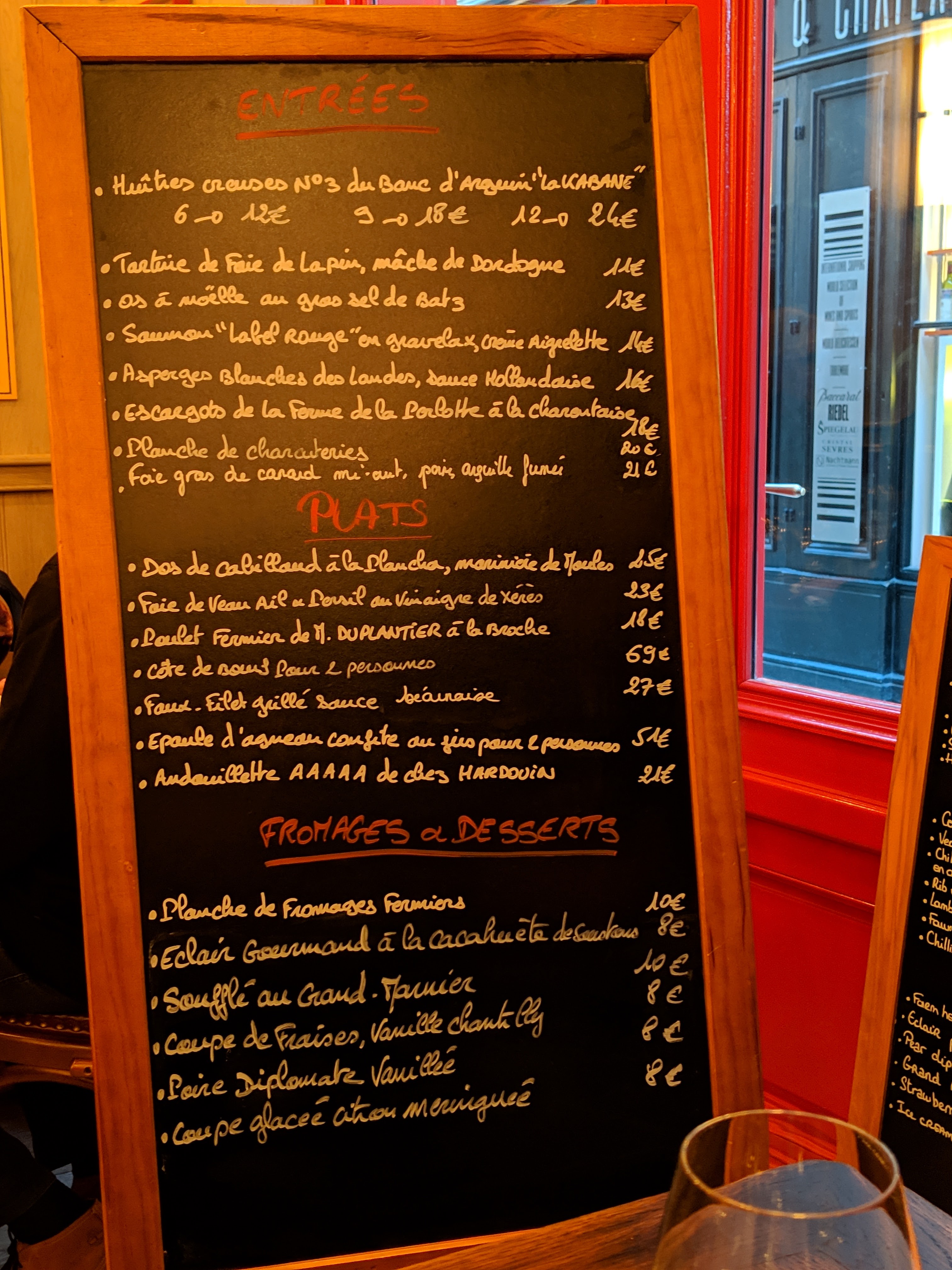 Beau restaurant, en particulier la cour. Des huîtres, de l'agneau et du merveilleux Bordeaux pour l'accompagner. Je recommanderais