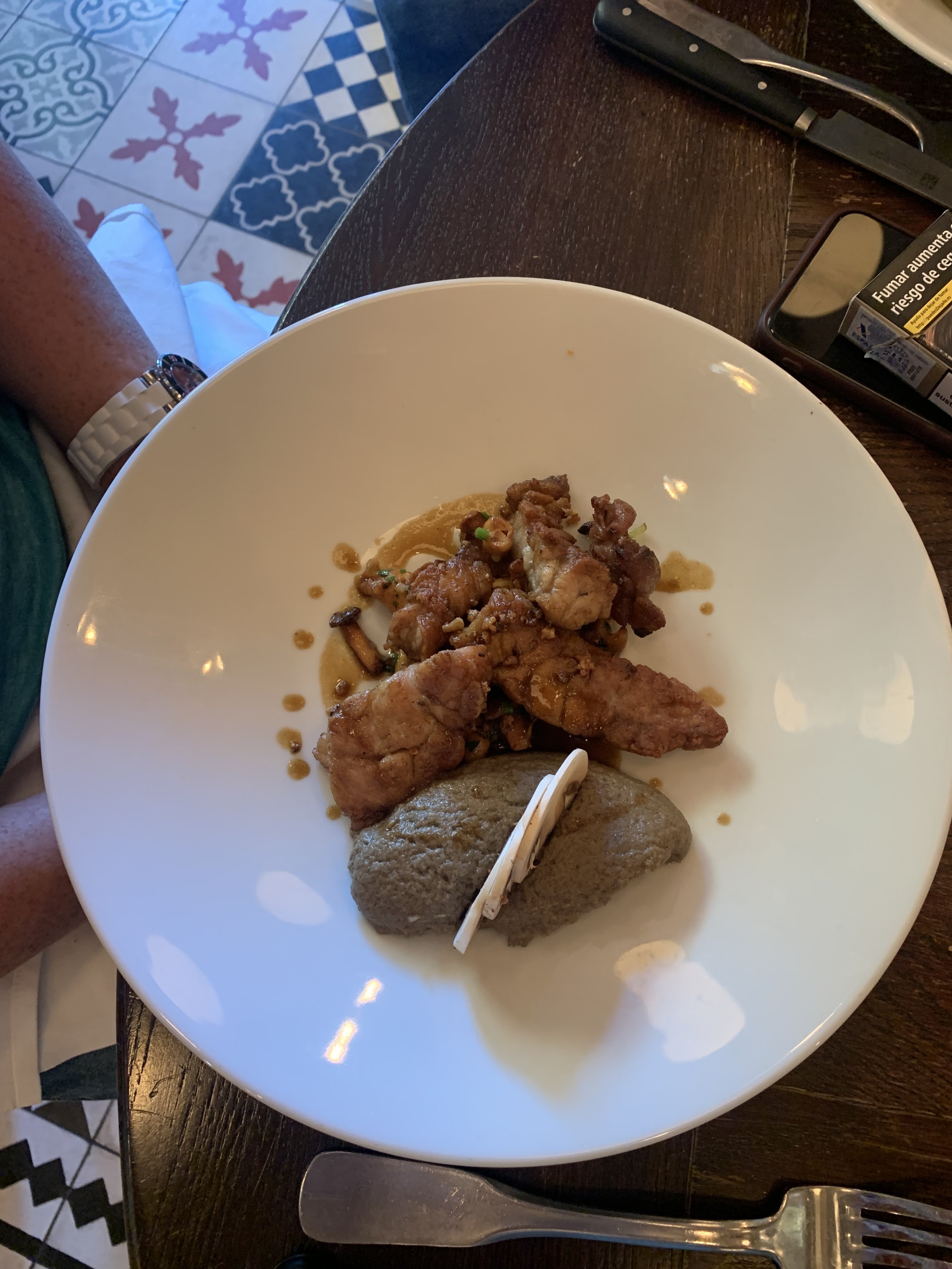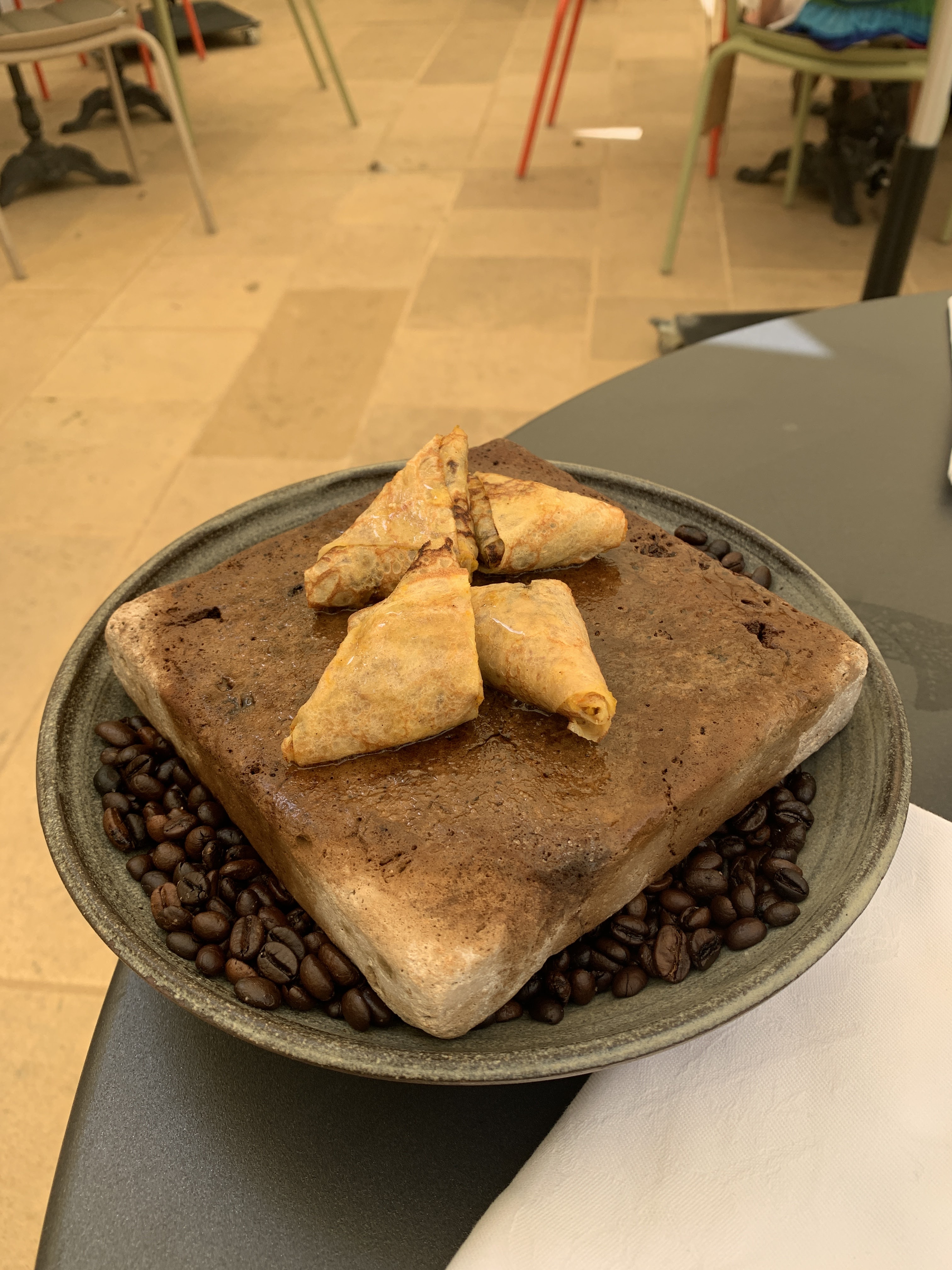 La nourriture est plutôt bonne. Nous avons eu le foie gras et l'agneau marocain. Les deux étaient bons, mais l'agneau avait besoin d'un peu de sel. L'evoo maison pour tremper le pain est délicieux. Le restaurant est très joli. Sachez simplement que tout le monde sera un touriste avec un guide touristique, mais je suppose que c'est tout St Emillion.