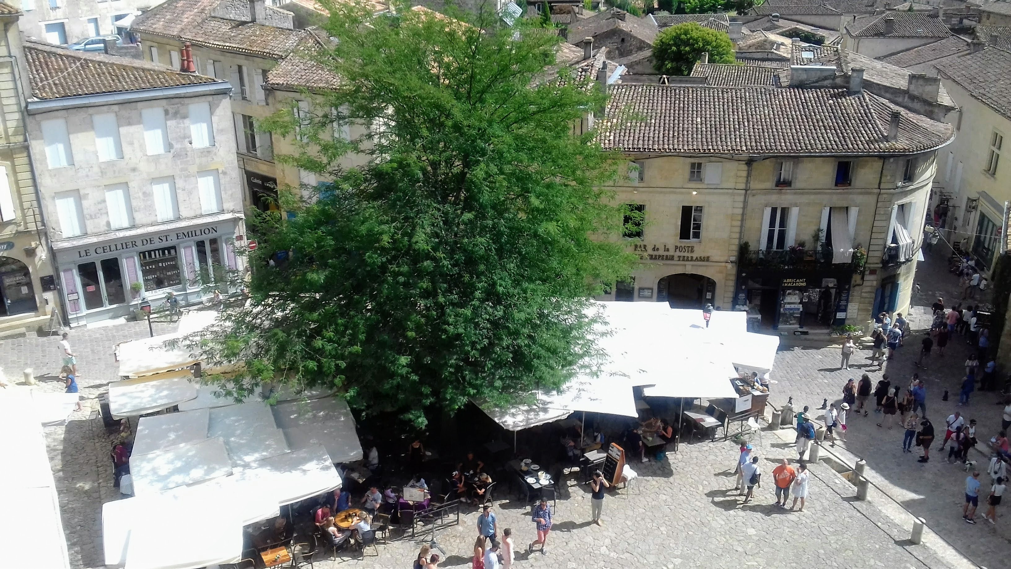 Dans le village pittoresque de Saint-Emilion se trouve un charmant restaurant... il cache la vue sur le sud-est mais il a son propre charme calcaire (nous nous sommes assis à l'arrière, sur la terrasse extérieure).