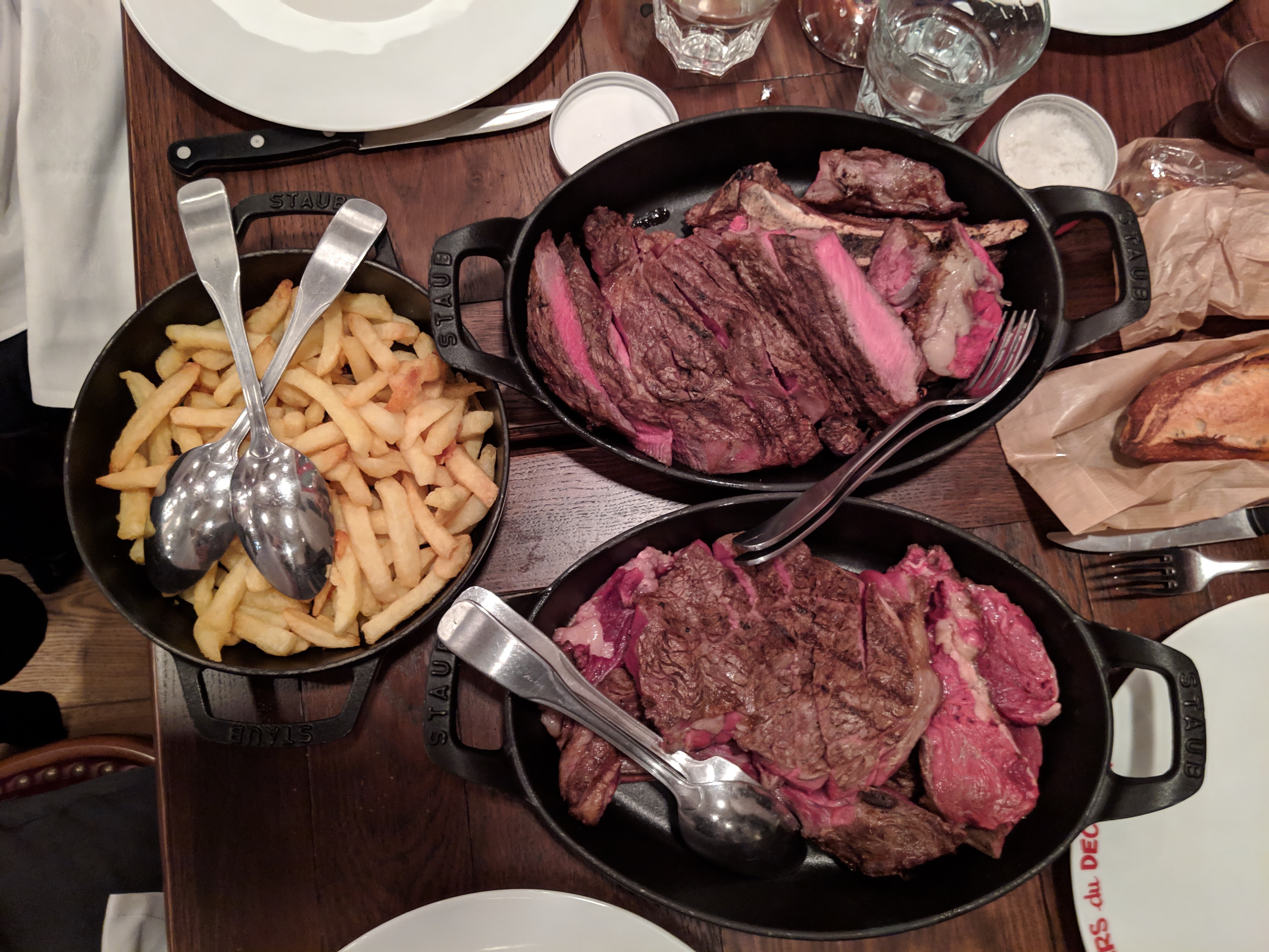 Médiocre malheureusement. Bien que le service soit très sympathique et poli (merci à nos serveurs !), la nourriture a vraiment laissé tomber cet endroit. Nous avions la côte de bœuf à partager, et le bœuf et les frites avaient un goût presque réchauffé, pas frais. Le steak était dur et vraiment pas ce que nous espérions en payant près de 90 euros !