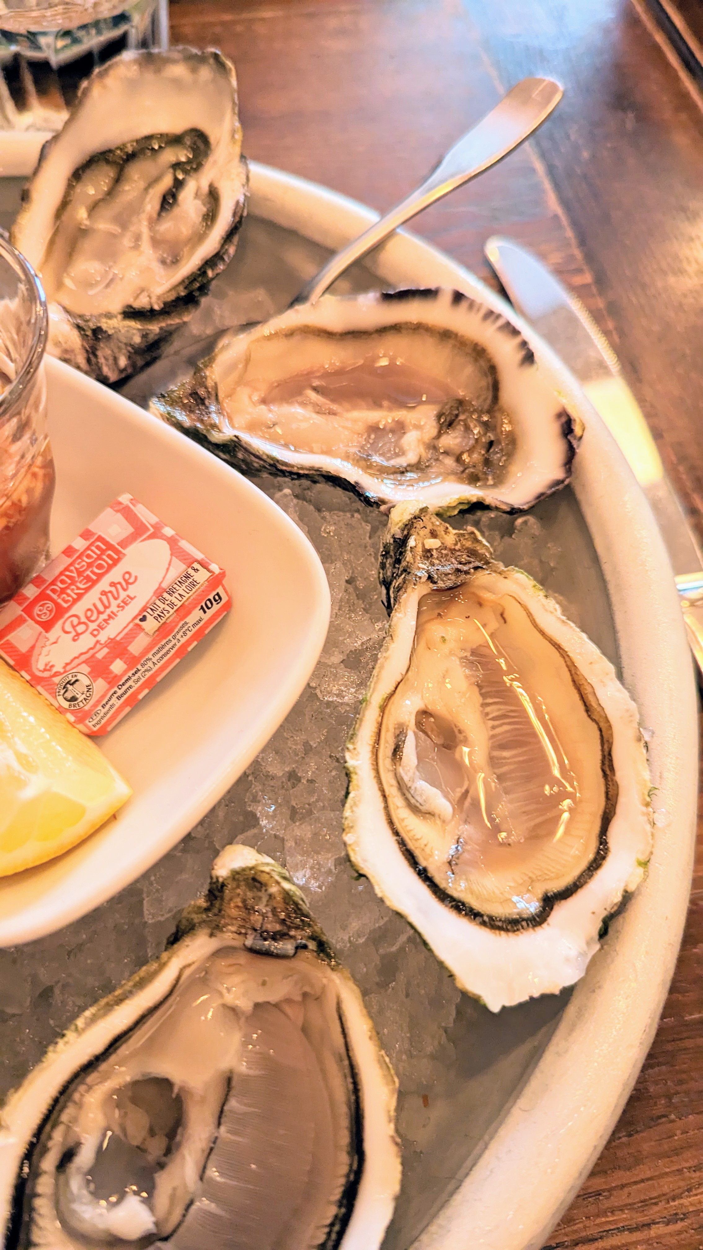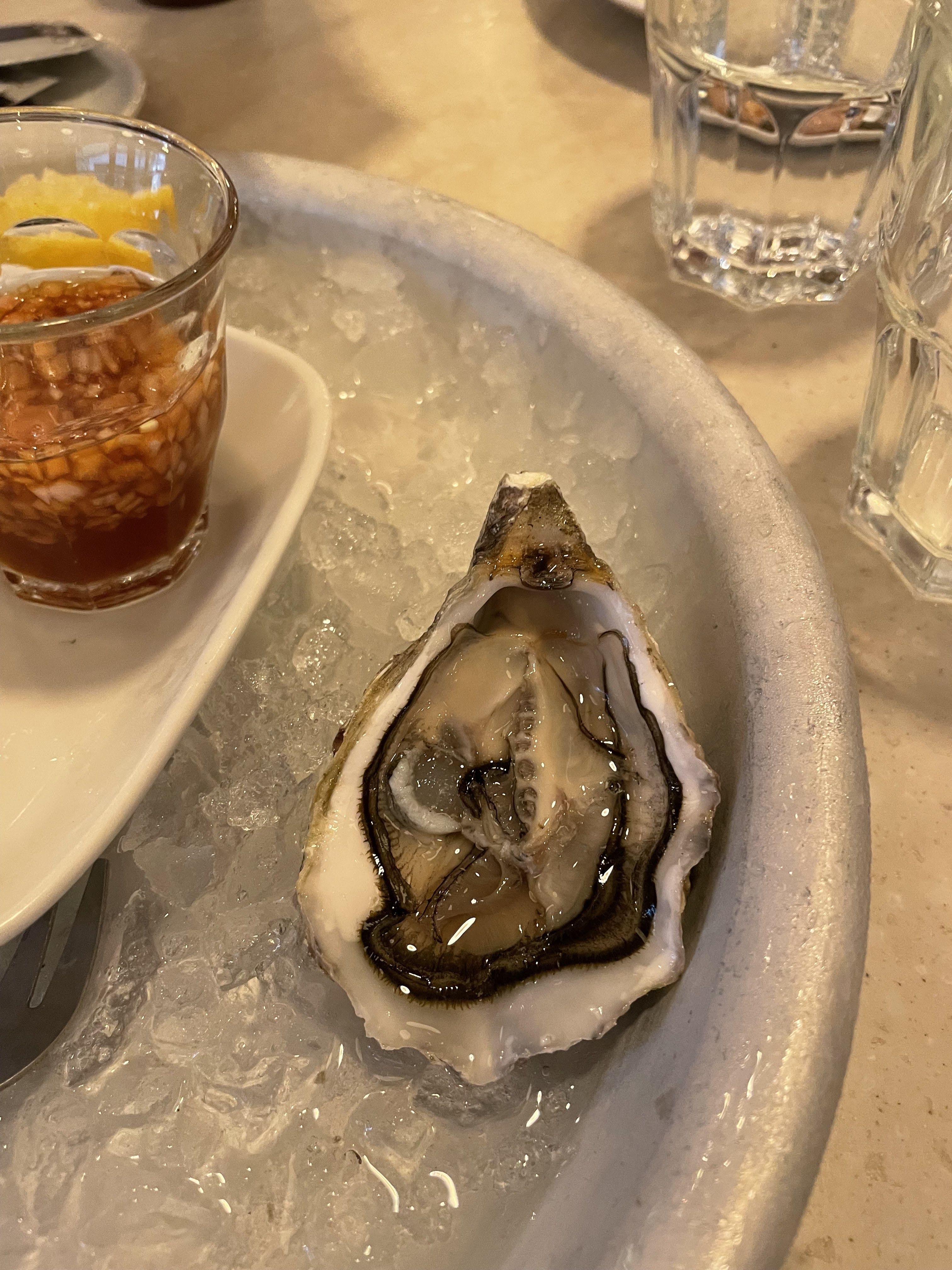 Vraiment un excellent restaurant mais certainement plus cher. Les huîtres étaient super, 20 euros les 6. L'épaule d'agneau est bonne mais un peu sèche, j'aurais aimé qu'il y ait une sauce. Expérience globalement agréable mais un peu chère