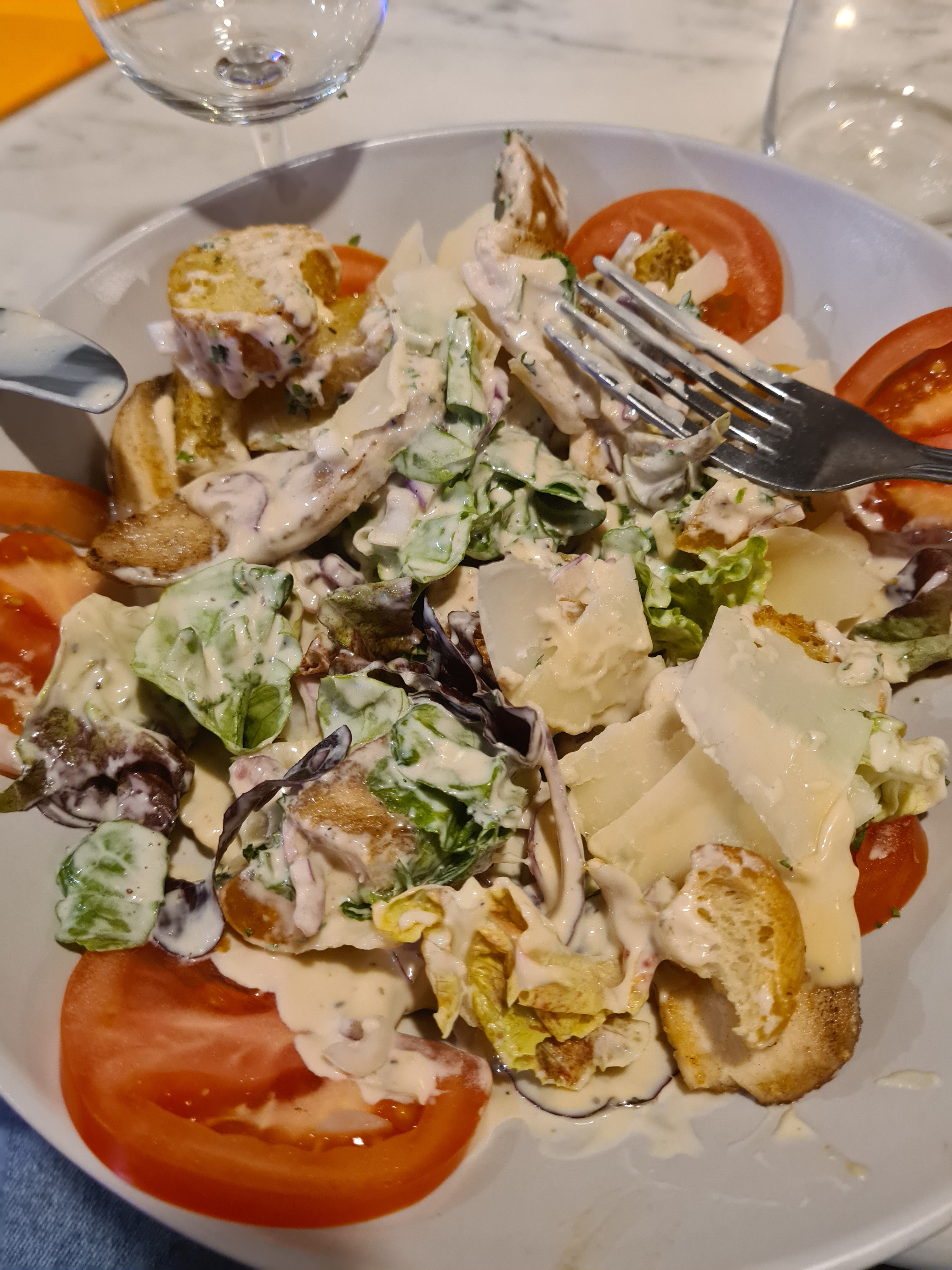Plats industriels et réchauffés au micro-ondes (vu depuis la cuisine..), vaisselles sales (verres avec les traces de bouche…). Prix très élevés par rapport à la qualité du restaurant, je ne recommande pas du tout !