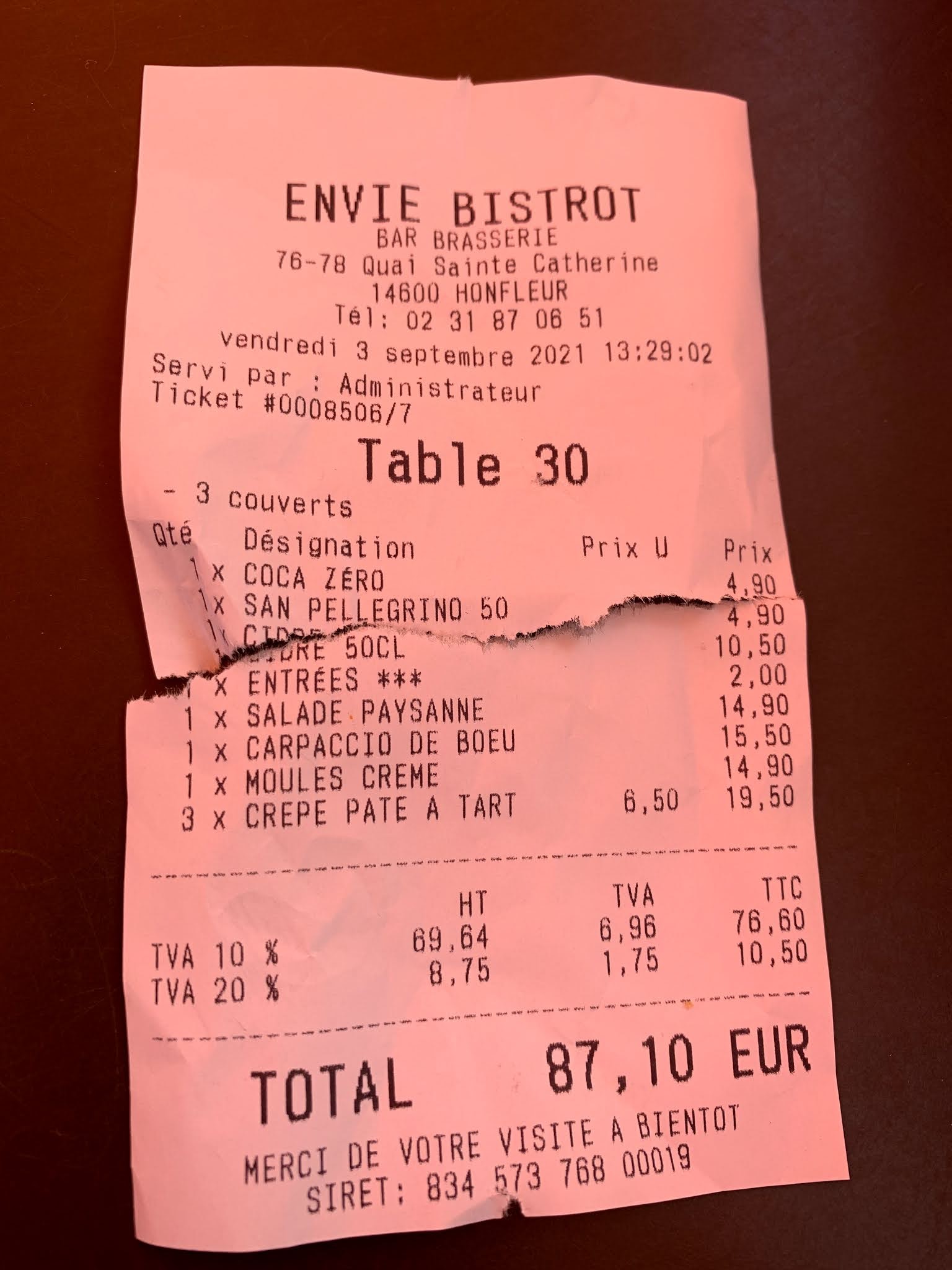Je recommande vivement. De passage à Honfleur nous avions très faim avec mon copain et nous avons reçu un très bel accueil dans ce bistrot et avons super bien mangé. Je reviendrai avec plaisir