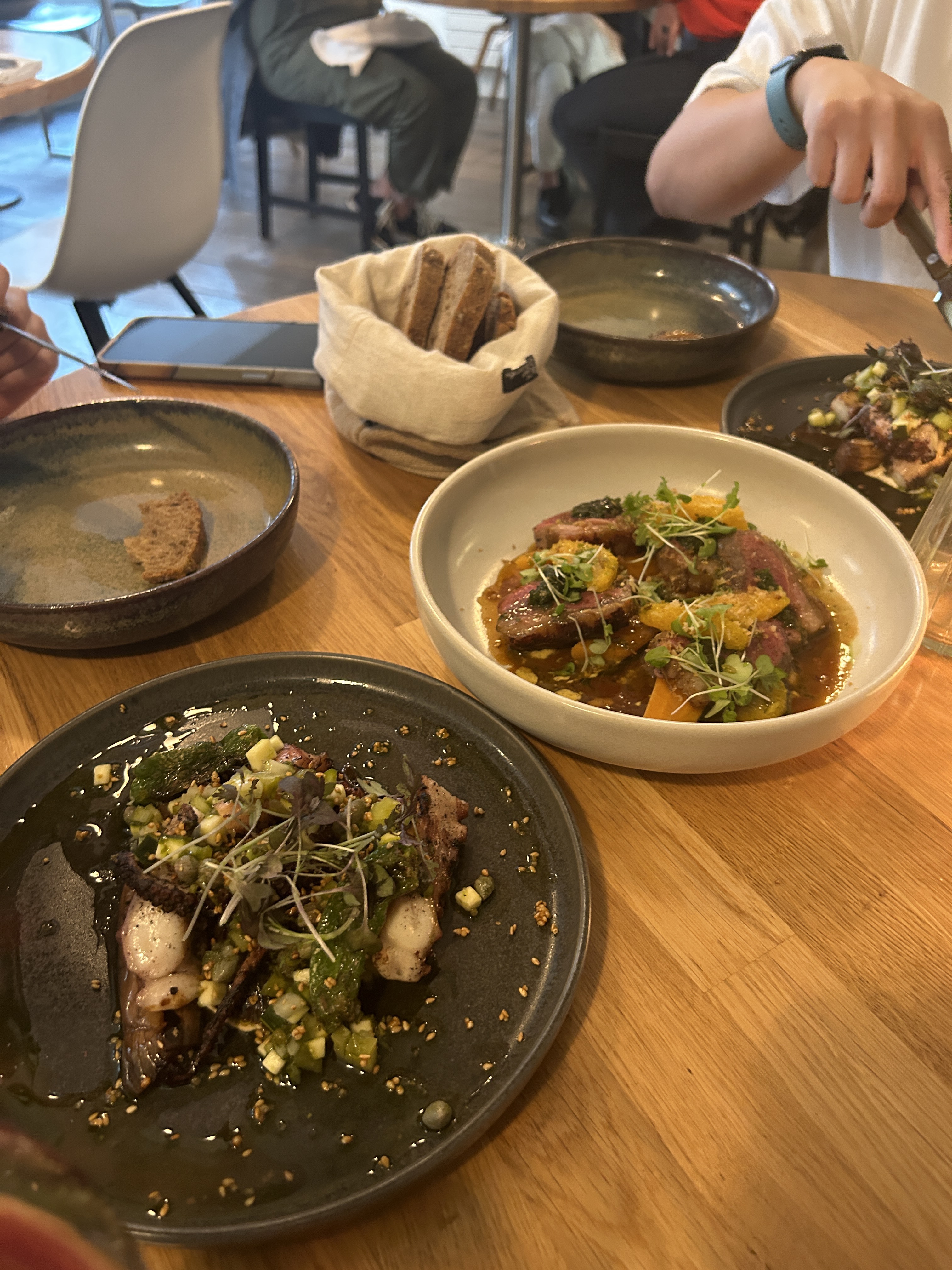 Le dîner était absolument délicieux. On a mangé un poulpe très bien cuisiné avec des petits légumes, c’était un régal. Desserts très bons également. Service sympa, décoration sobre et jolie. Bémol : c’est quand même cher. On a partagé une entrée, pris un plat par personne et un dessert par personnes + 2 verres de vin par personne. On en a eu pour 70€ chacun
