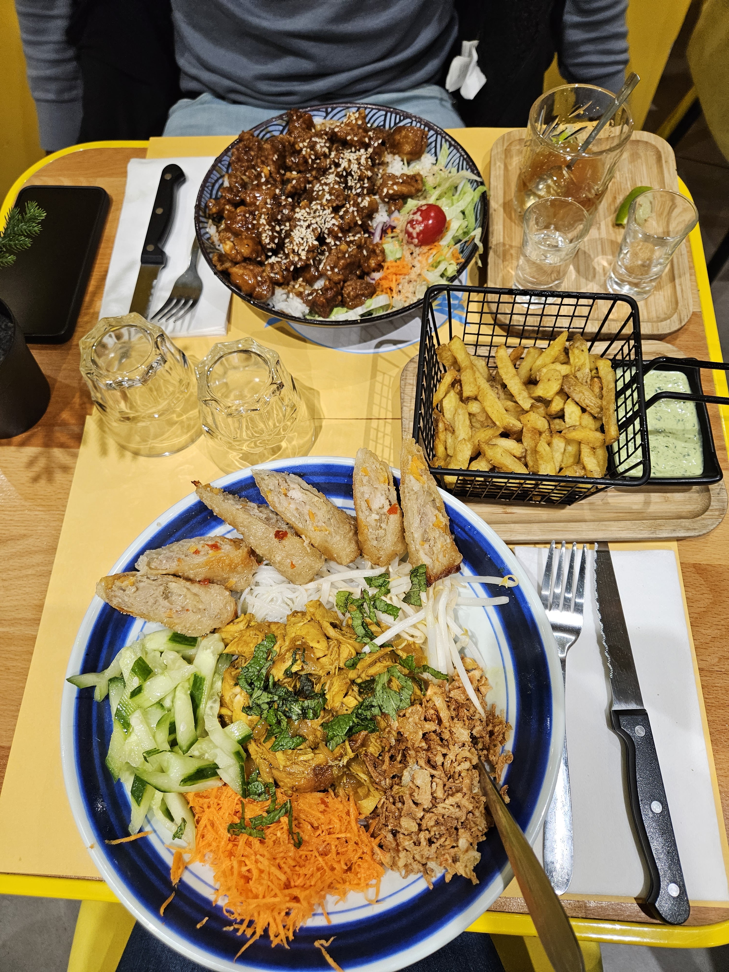Très belle décoration, beau design, personnel plutôt agréable et service rapide. Plats assez copieux et abordable Bo bun plutôt bon.