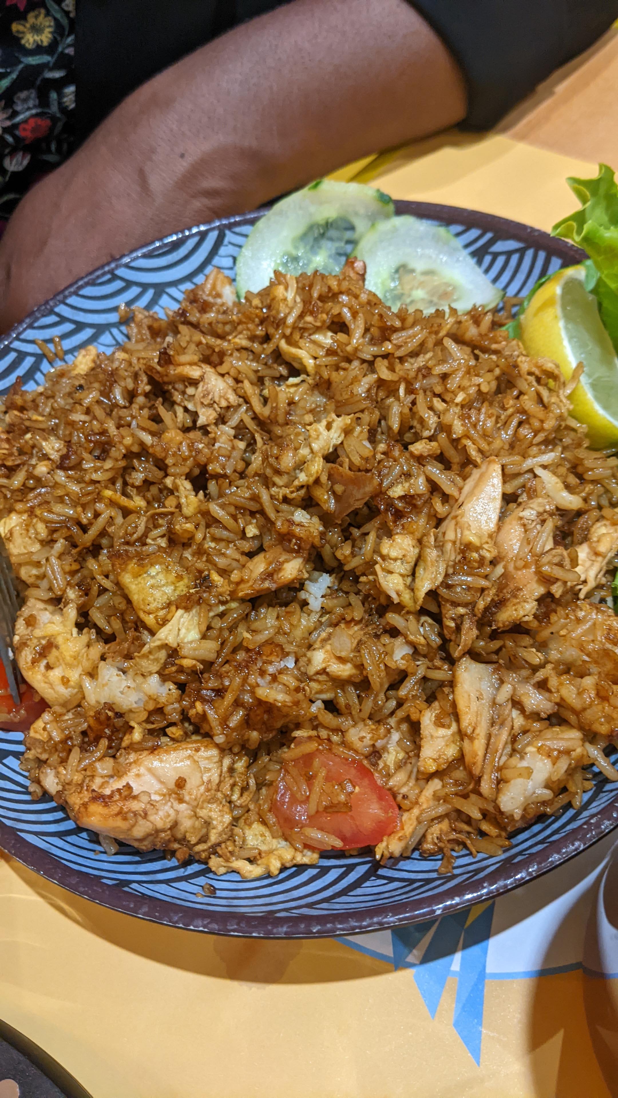 Les plats mélange de plats asiatiques et africains. Très très copieux, on en a pour notre argent ! Menus proposés ainsi que de bons cocktails.