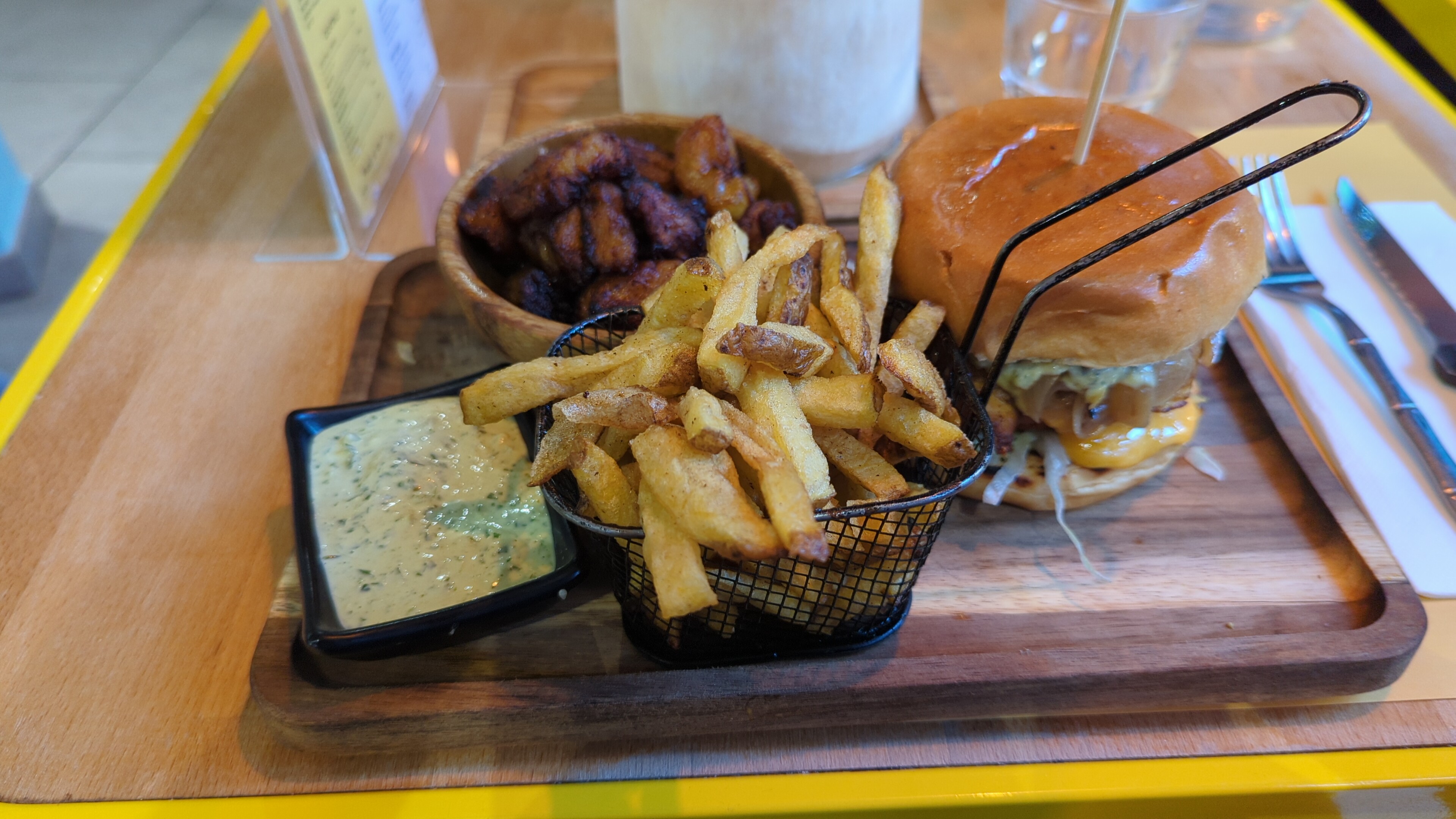 Décoration très sympa, ambiance agréable, service rapide et serveurs a l'écoute. Quant au repas : succulent !!! Juste dommage pour les frites qui étaient mauvaises et ne semblaient pas être des faits maison comme écrit sur la carte.