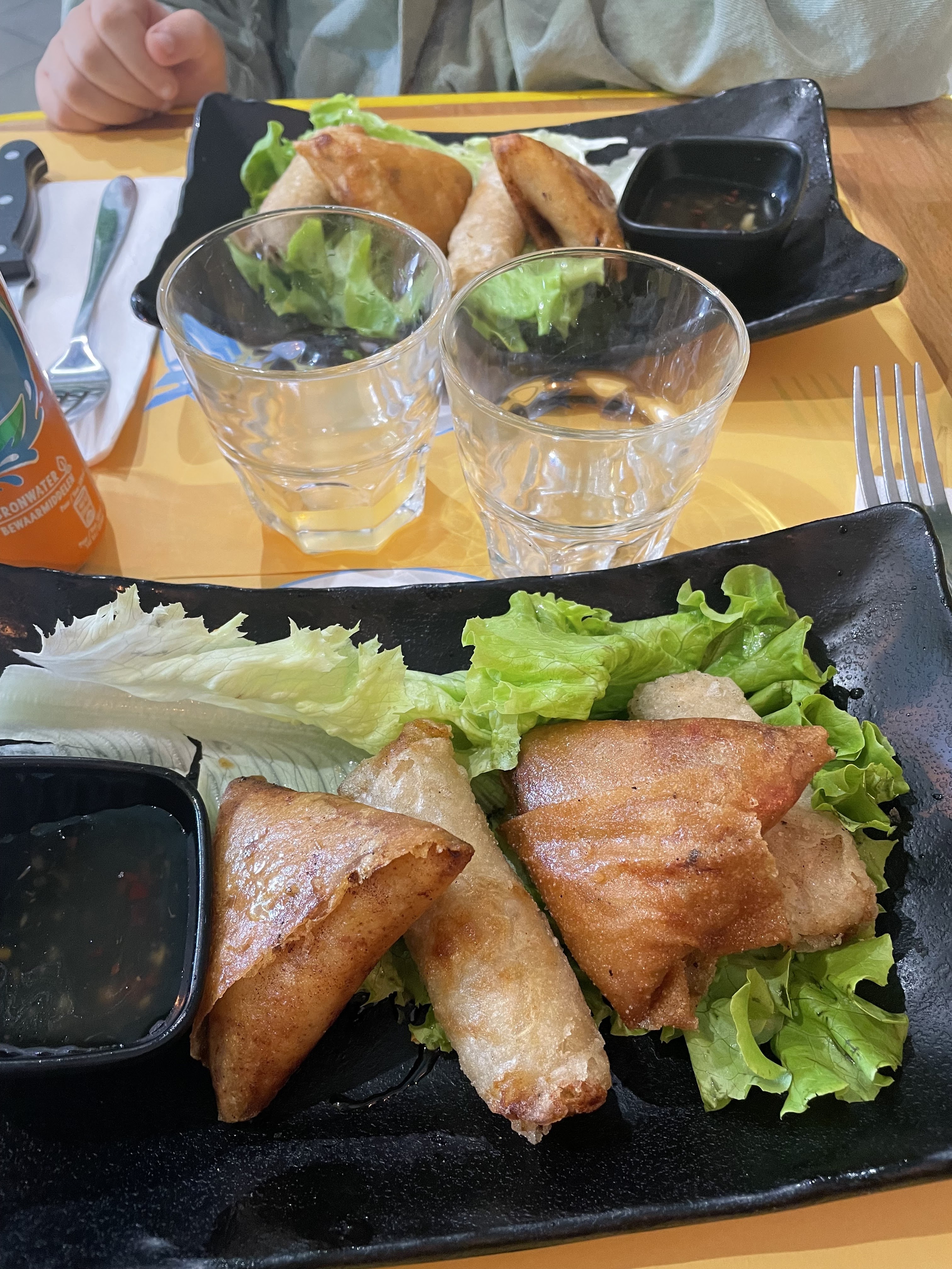 Nous venons d'être livrés. C'est la deuxième fois qu'on commande. La première fois était parfaite Mais là.. ma femme a commandé des rouleaux de printemps. Elle n'a pas pu les manger. J'ai cru qu'ils étaient un peu différents au boeuf un peu grillé, j'en ai mangé un. Sauf qu'après vérification sur Uber, il semblerait qu'ils étaient censés être au poulet et à la cacahuète, du coup j'espère ne pas avoir mangé un truc faisandé et que je ne vais pas crever dans la nuit... En admettant que je ne sois pas malade, quelle déception aussi d'avoir commandé 1 sauce verte et 1 sauce au piment et de ne pas les retrouver dans la commande... D'autant plus que nous les avons payé. En bref une première expérience de qualité et une seconde atroce...