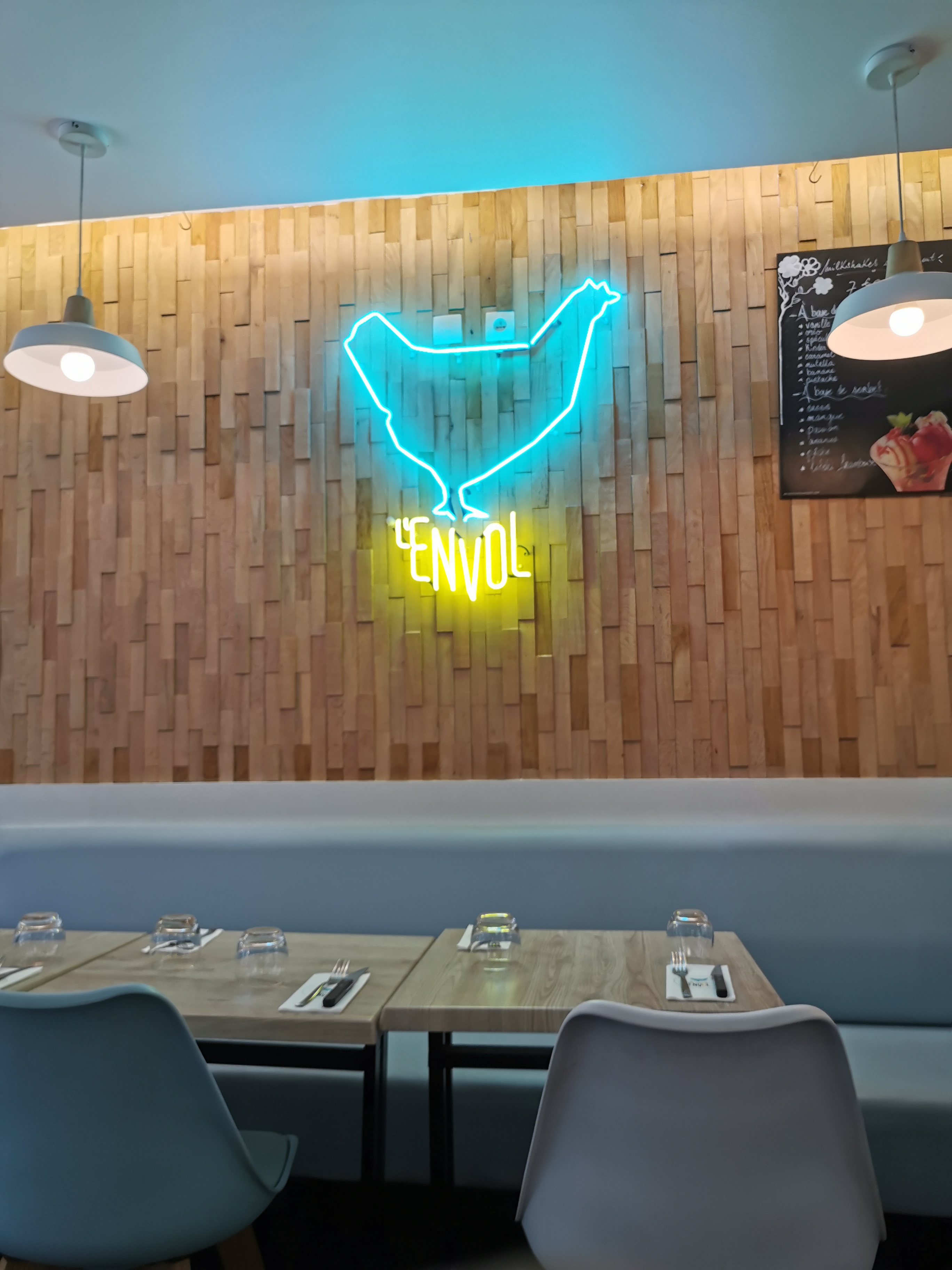 Restaurant spécialisé dans le poulet sous toutes ses formes et cuisiné dans des saveurs de différents pays. Le cadre est très joli, avec de la verdure, des néons, des chaises en velours. Au niveau des plats, il y a beaucoup de choix. De l'Asiatique, à l'américain en passant par l'africain, les poulet peut être partagé grâce à des tapas. Il y a aussi des plats individuels alléchants (burgers, poulet braisé...). Pour ma part, j'ai pris l'assortiment en entrée (nem, brick chèvre miel et brick poulet cheddar). Tout était bon mais de l'huile dégoulinait des bricks. Pendant plusieurs minutes. Ils auraient mérités d'être égouttés. Pour le plat, j'ai pris un burger avec pain bao. Le pain est arrivé tellement DUR que mon couteau ne passait pas dans le dessous du pain. Une fourchette ne pouvait même pas être plantée... Comme un pain trop rassis. Les frites étaient excessivement grasses et pas croustillantes. En dessert, le mango sticky rice laissait à désirer. Le riz était posé et recouvert de lait de coco donc pas cuit dedans. Si vous aviez mangé le dessus, le dessous n'était plus que du riz sans goût. Enfin concernant le restaurant, le couloir menant aux toilettes était une véritable patinoire. On aurait dit qu'on avait renversé un bac d'huile tellement le sol glissait. Même en baskets, vous pouviez voir vos pieds s'éloignaient l'un de l'autre malgré vous tellement il n'y avait plus d'adhérence. Les toilettes, elles, étaient propres mais il manquait le boutton qui permet de tirer la chasse d'eau... Bref, je suis peut-être tombée le mauvais soir. Malgré un concept très intéressant, je suis vraiment déçue.