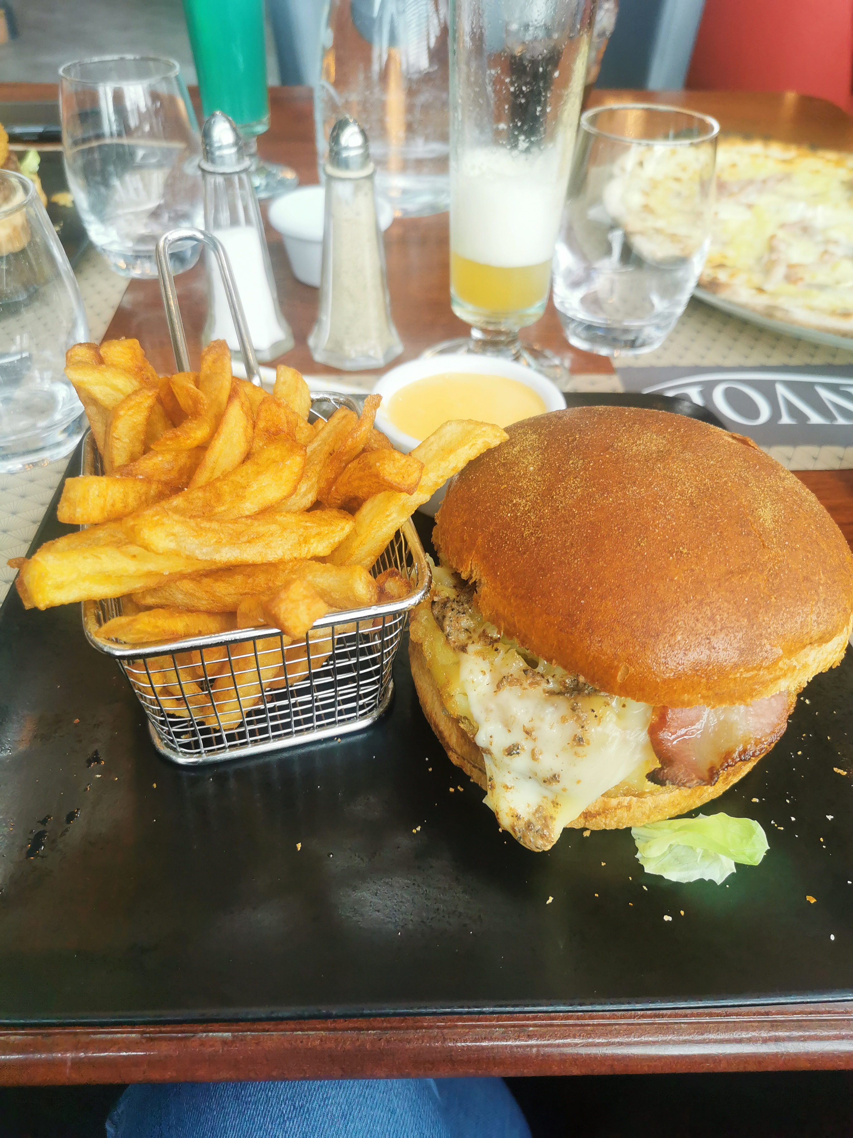 Au top les plats sont une véritable tuerie. Nous y somme allés en famille deux adultes et deux enfants. Mon fils c'est aventuré sur un burger appelé le 480'' un burger immense la qualité de la viande est irréprochable. La présentation est top. Bon pour un enfant de 11 ans c'est démesuré évidemment. Je l' ai aidé. L'accueil et le service sont au poils et pour 4 apéritif plat dessert vous serez sous la barre des 100€. Donc un rapport qualité prix excellent. À très bientôt.