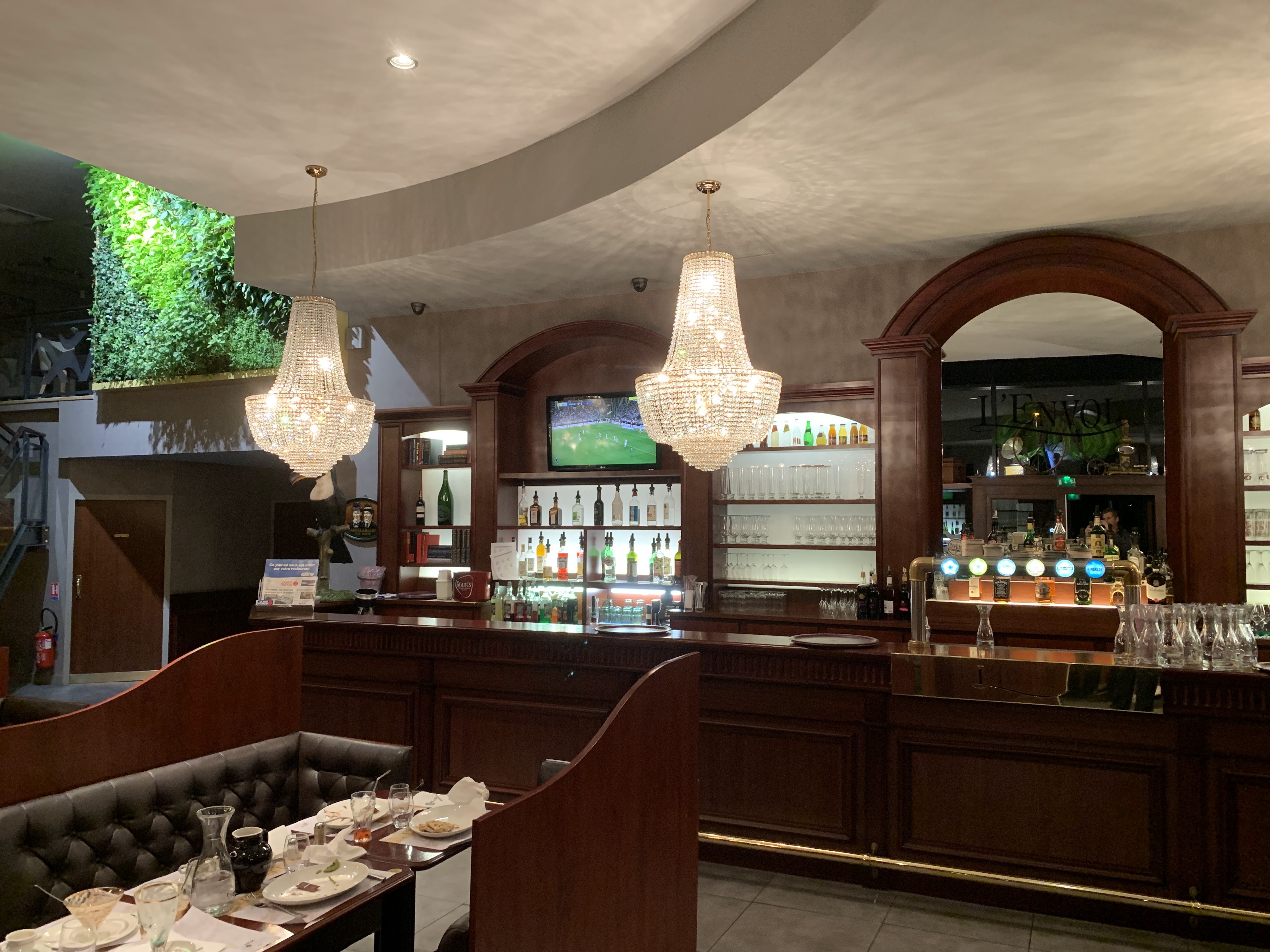 Très bel établissement. Magnifiques lustres de créateurs. A voir en buvant un verre où en se restaurant... Une halte facile lorsqu'on est en transit.