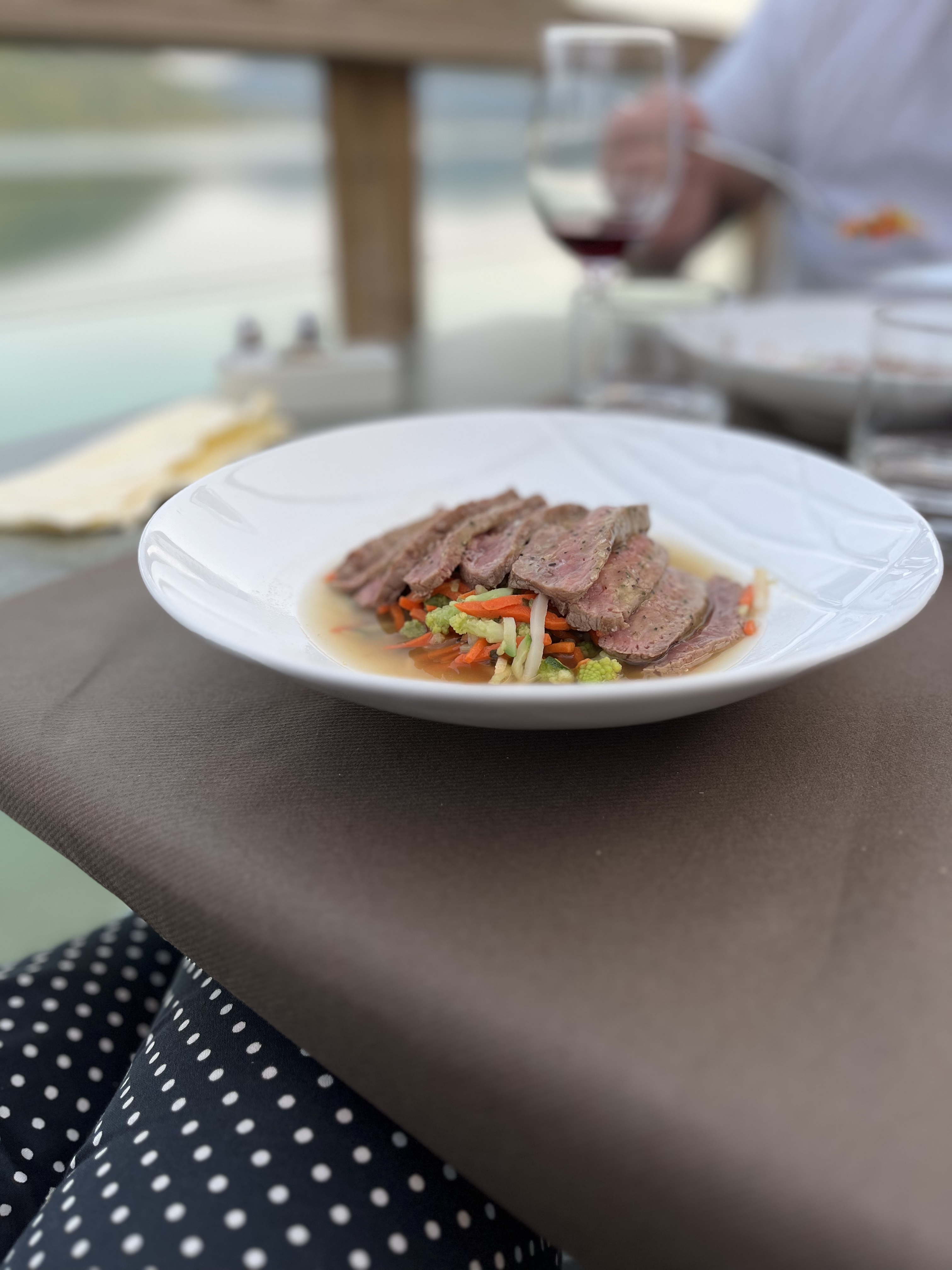 Un moment agréable. Salle de restaurant soft, vue magnifique,une présentation des assiettes jolies et les mets très bien cuisinés . Je le conseille.
