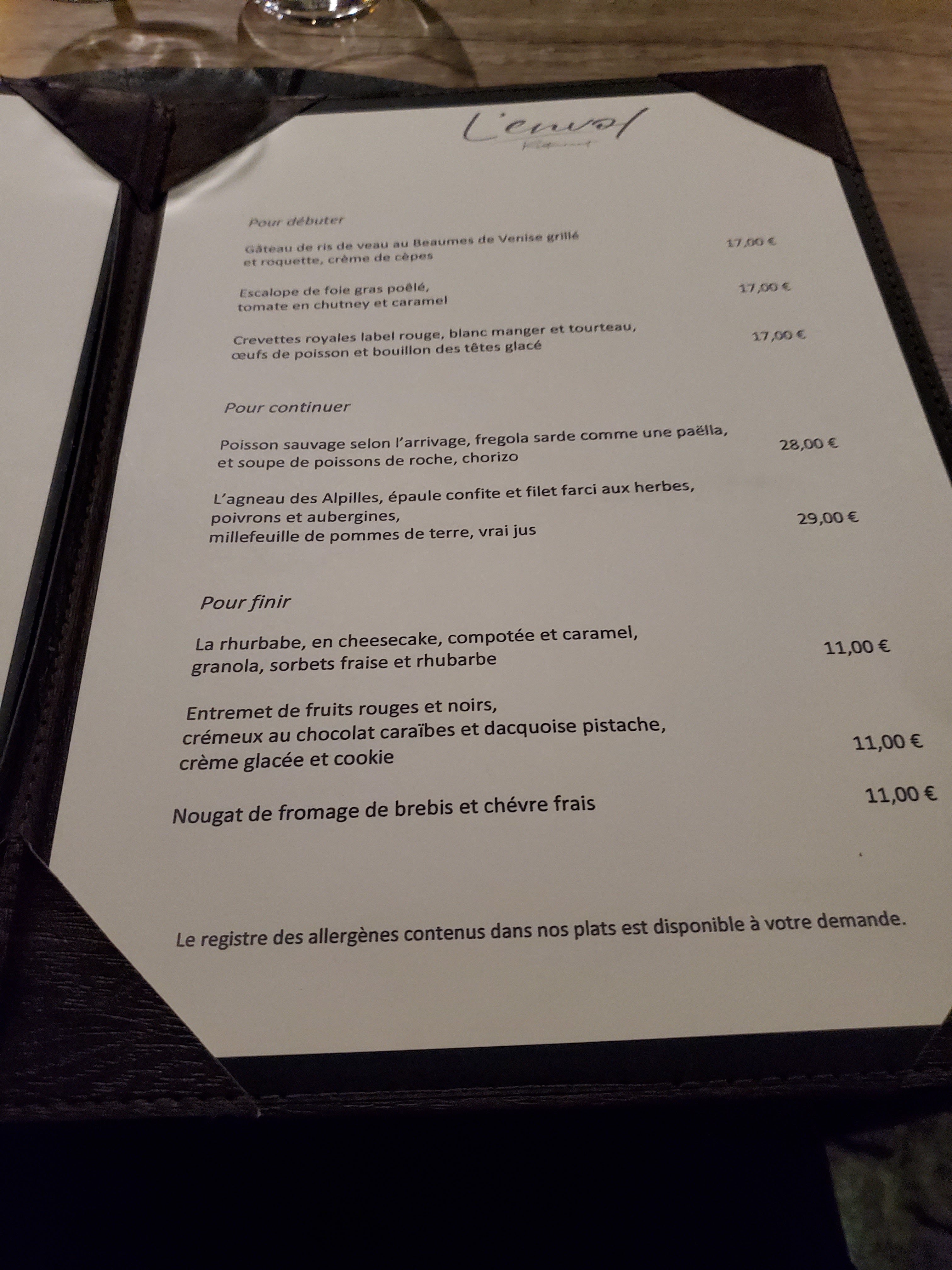 Nous avons passé un excellent moment à l'envol. Tout était parfait du début à la fin cuisine fine, généreuse et de grande qualité, service chaleureux et professionnel, une très belle carte des vins. Une adresse à recommandé.