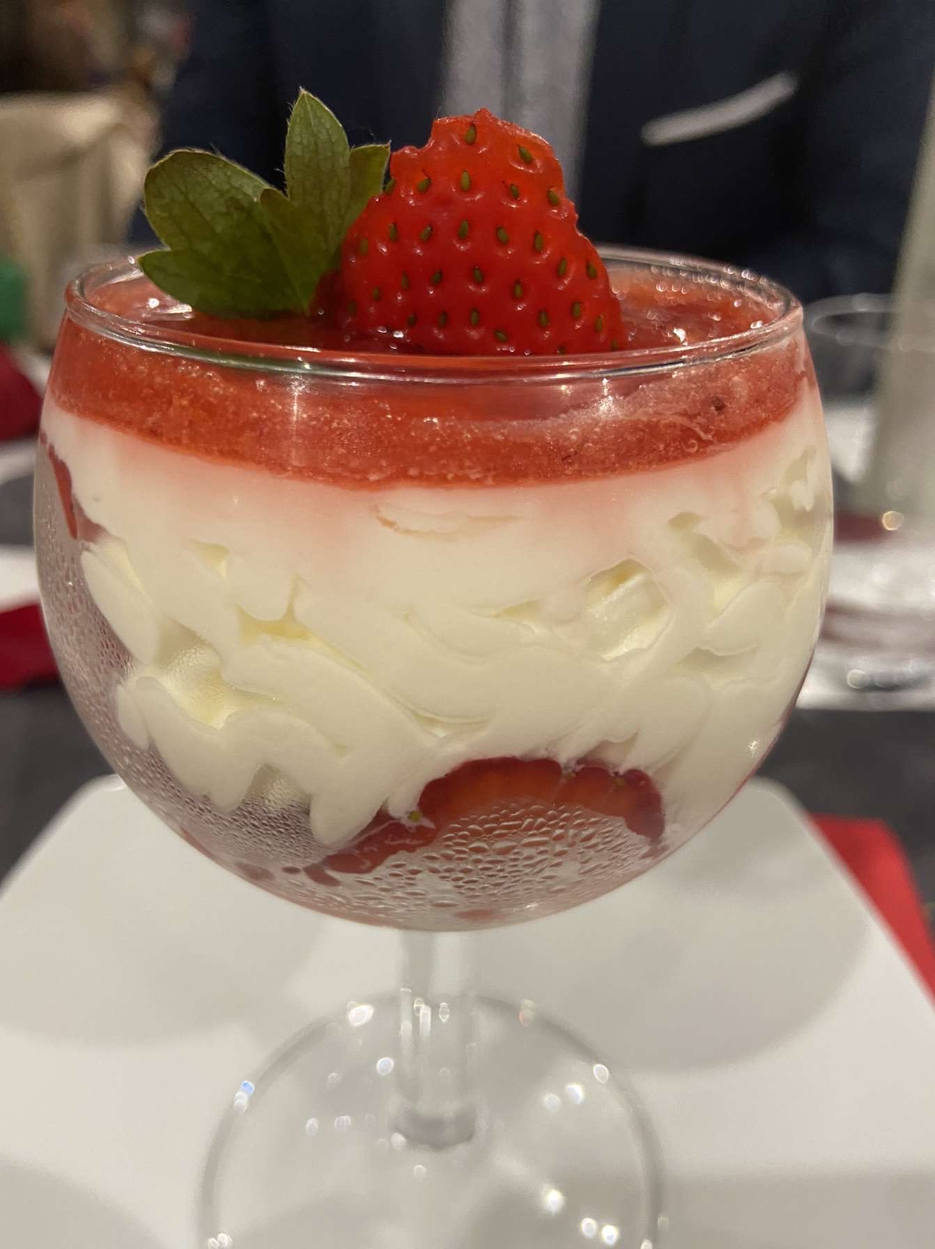 Que de promesses domage servi dans de la vaisselle de cantine un excellent foie gras une marmite de poisson moyen et fraises Melba boff