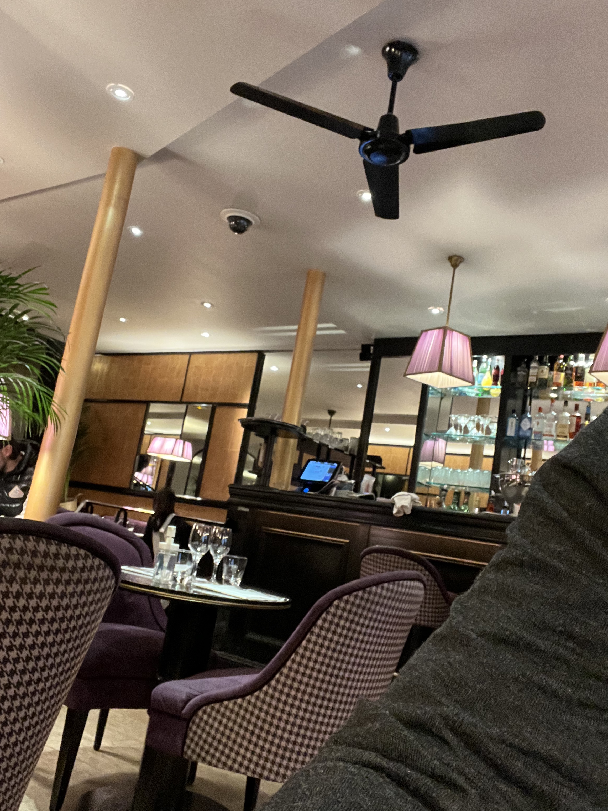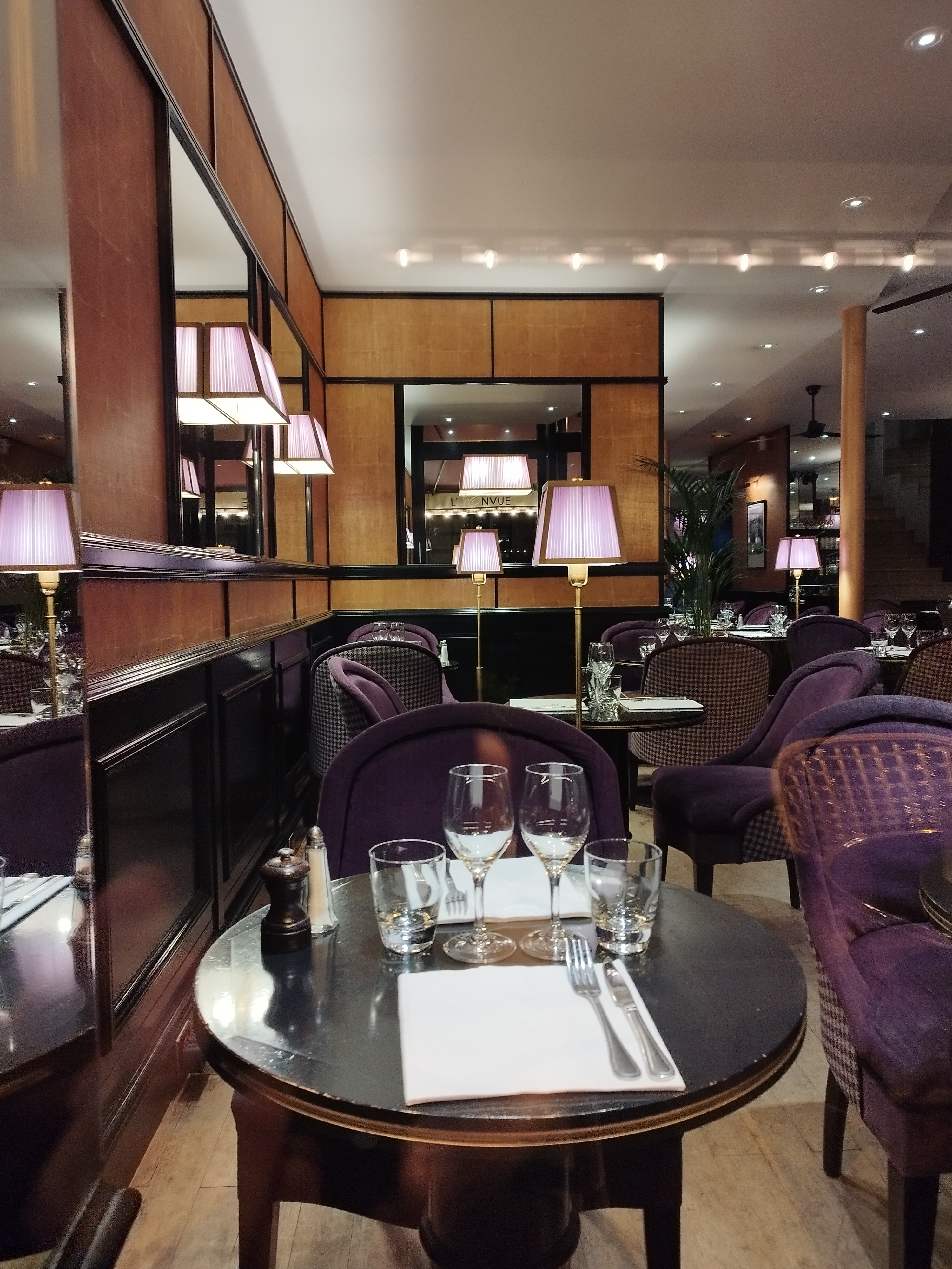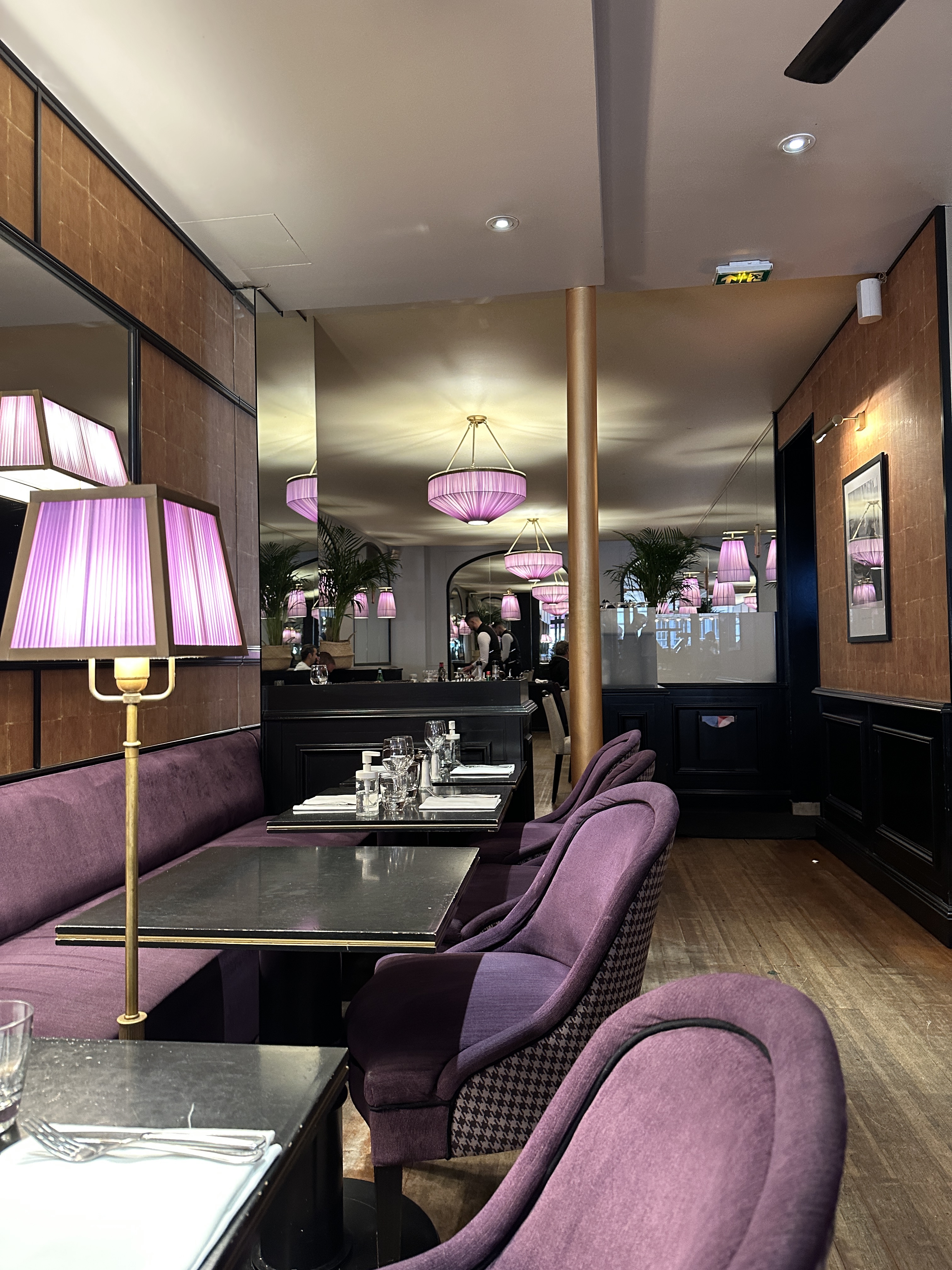 Si comme moi vous aimez la couleur violette, vous aimerez probablement la décoration de cet endroit : toutes les chaises, bancs et lampes ainsi que certains objets de décoration sont violets. C'était le repas le plus cher que nous ayons mangé à Paris, et dans cette optique, la nourriture n'en valait pas vraiment la peine. Nous avons mangé de nombreux repas délicieux dans toutes sortes de bons restaurants de la ville pour moins cher. Ce n'est pas que la nourriture était mauvaise, ce n'était tout simplement pas quelque chose de spécial et ne valait donc pas son prix pour moi.