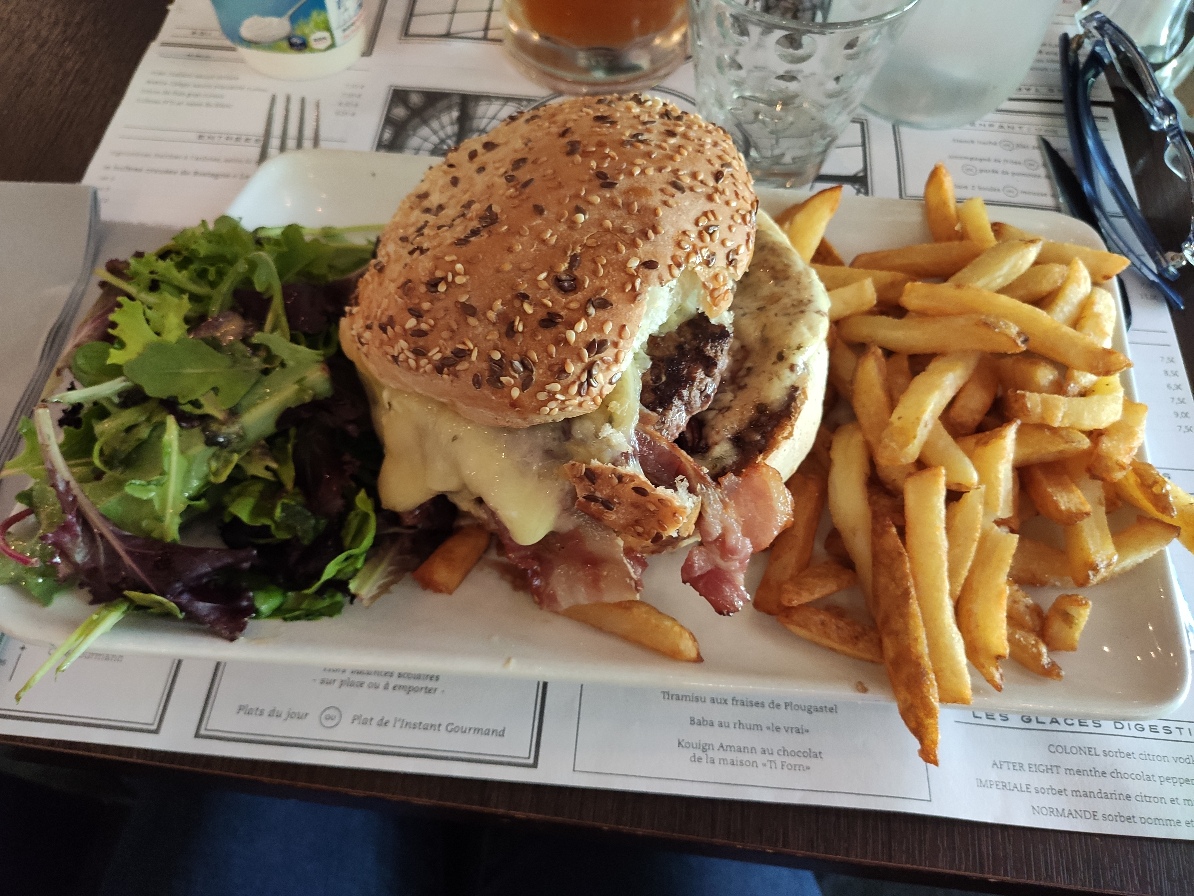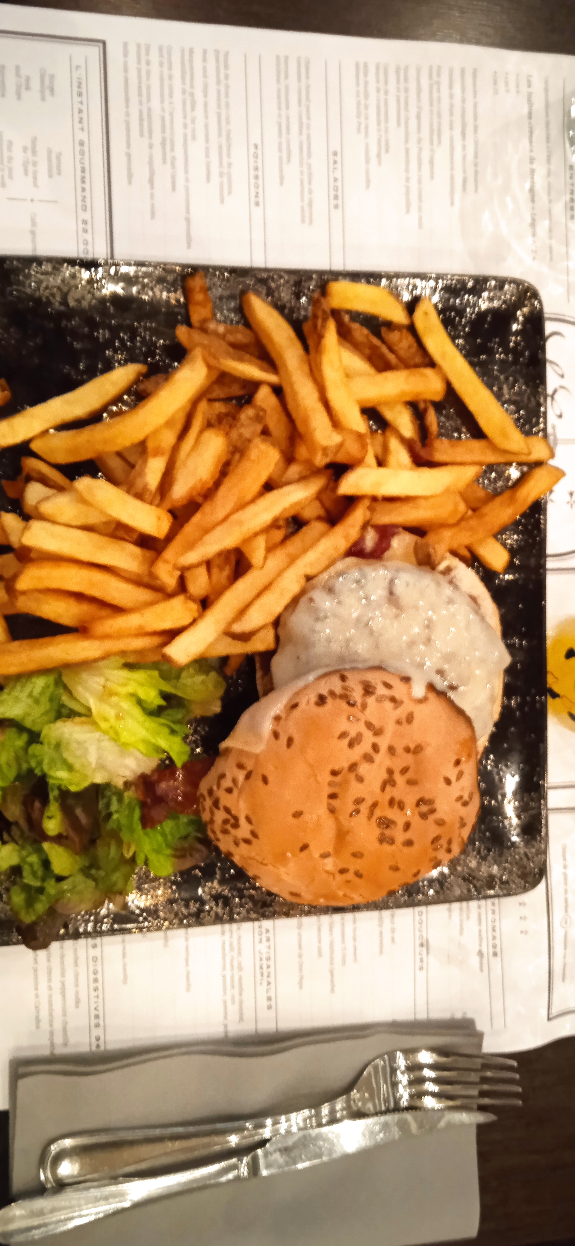 Un bon hamburger, une belle part de fromage de chèvre...Presque parfait si ce n'est que le choix de la boisson demandée ne fût pas respecté et qu'une autre marque d'eau pétillante fût servie sans mon accord préalable...