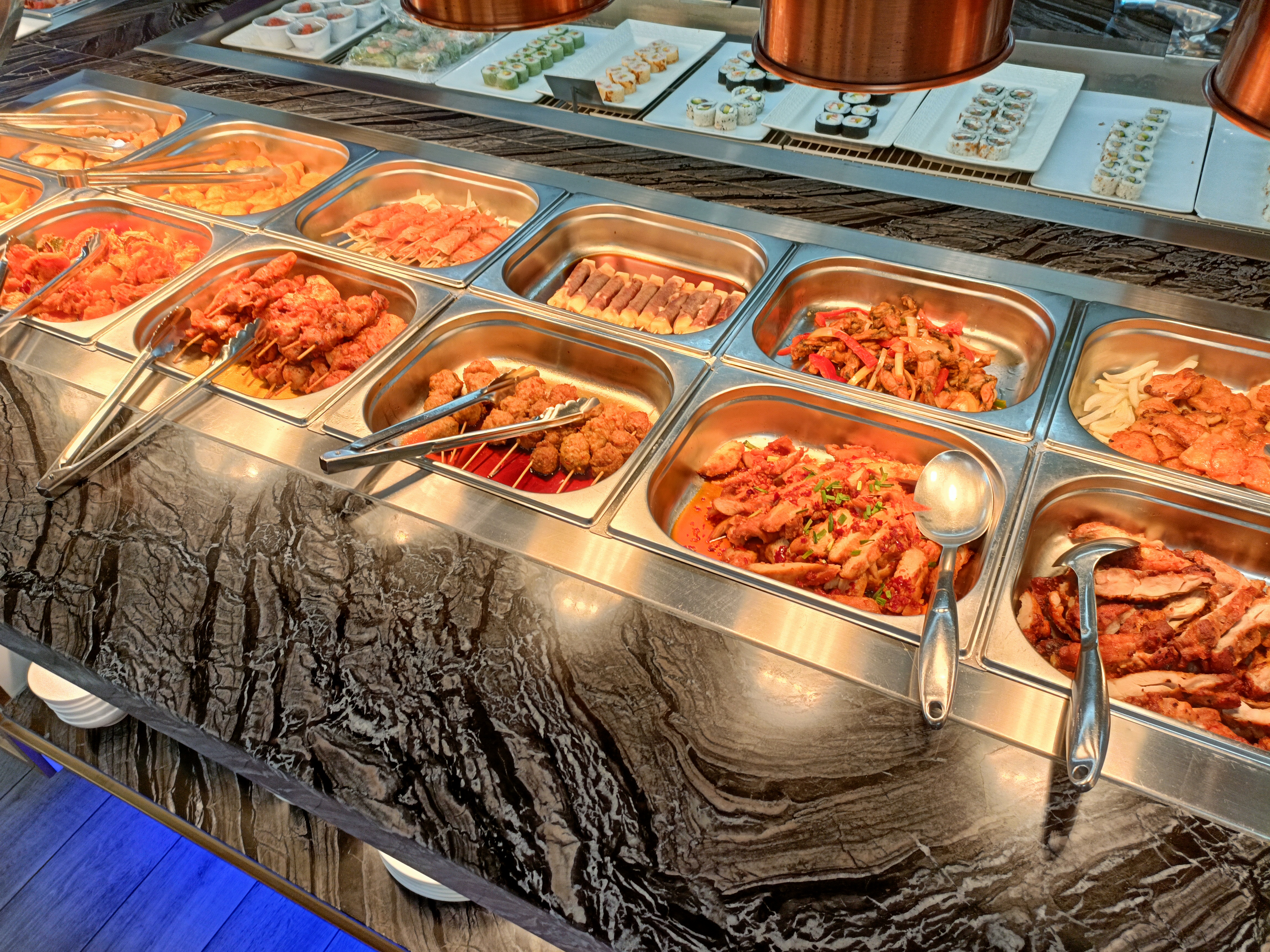 Buffet varié mais les crevettes tâchés de noir montrent un manque de fraîcheur