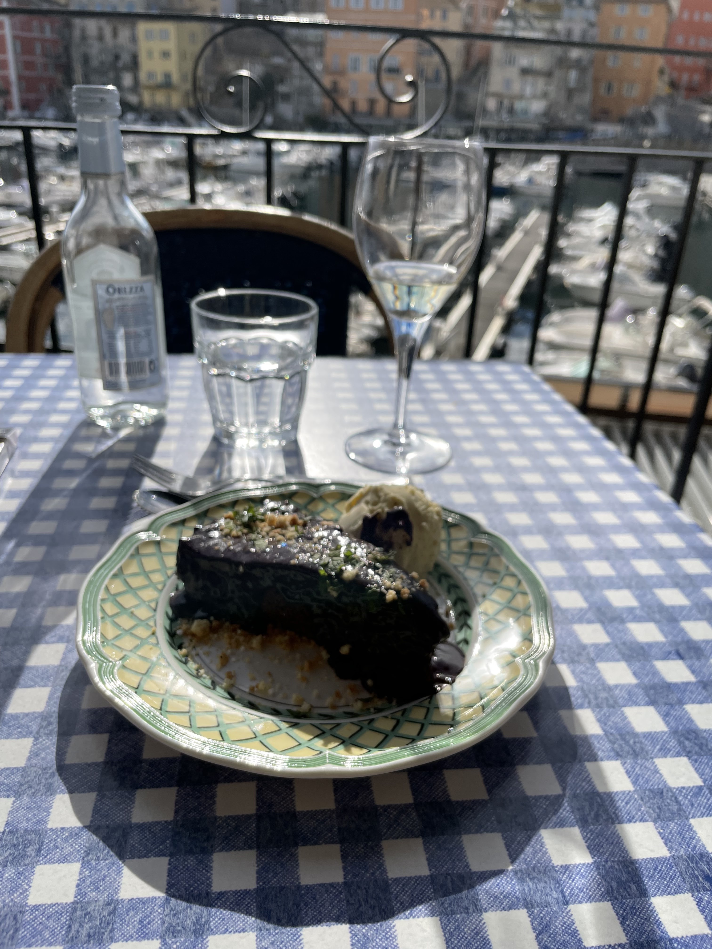 Jolie vue sur le port. La nourriture était bonne. Le jeune homme qui servait notre table était un peu patient.