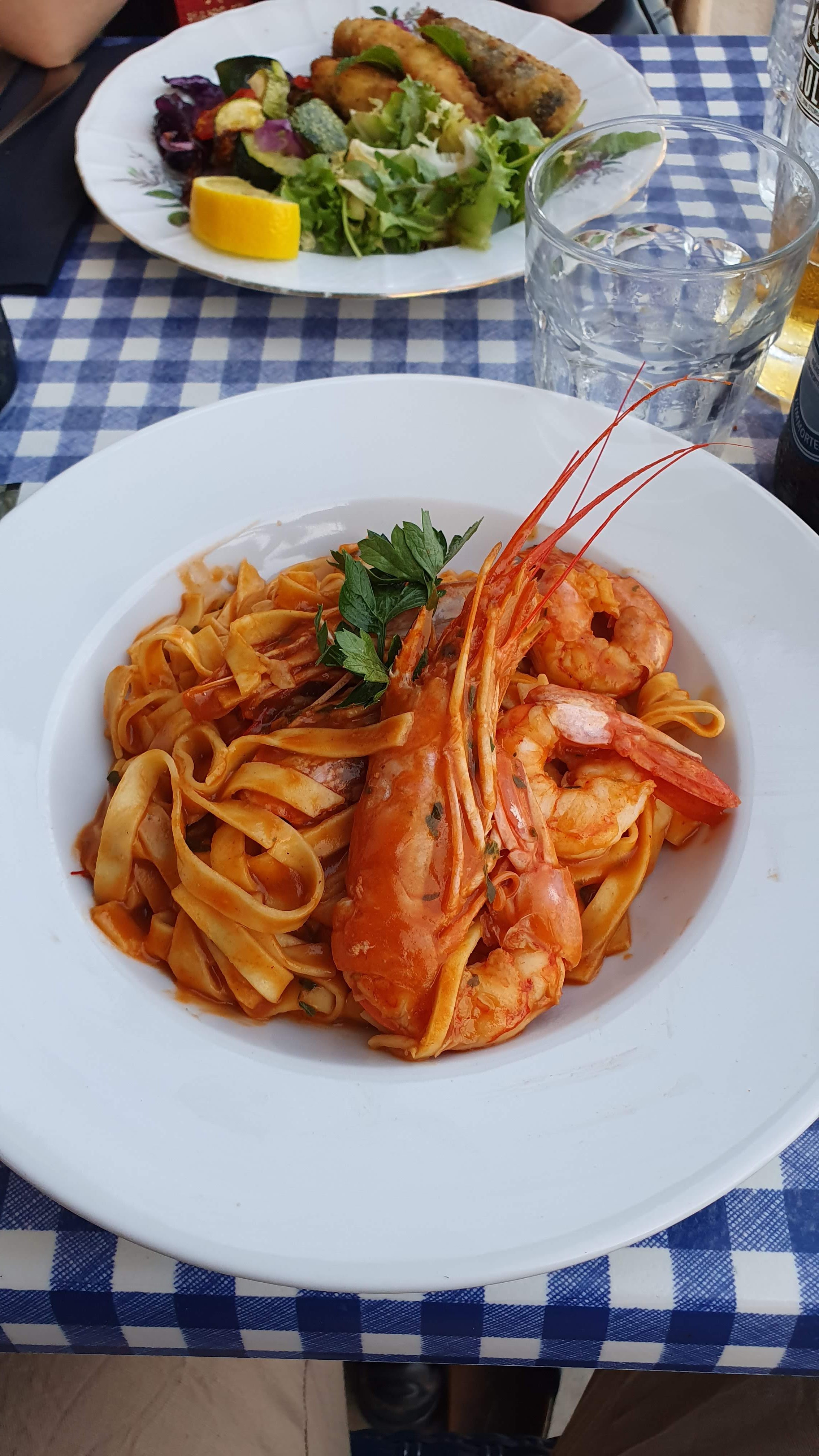 Petit restaurant caché dans une des nombreuses petites rues de la ville, mais qui vaut le coup d être découvert ! Petite terrasse surplombant le vieux port. Service accueillant et professionnel et linguini aux gambas excellentes...