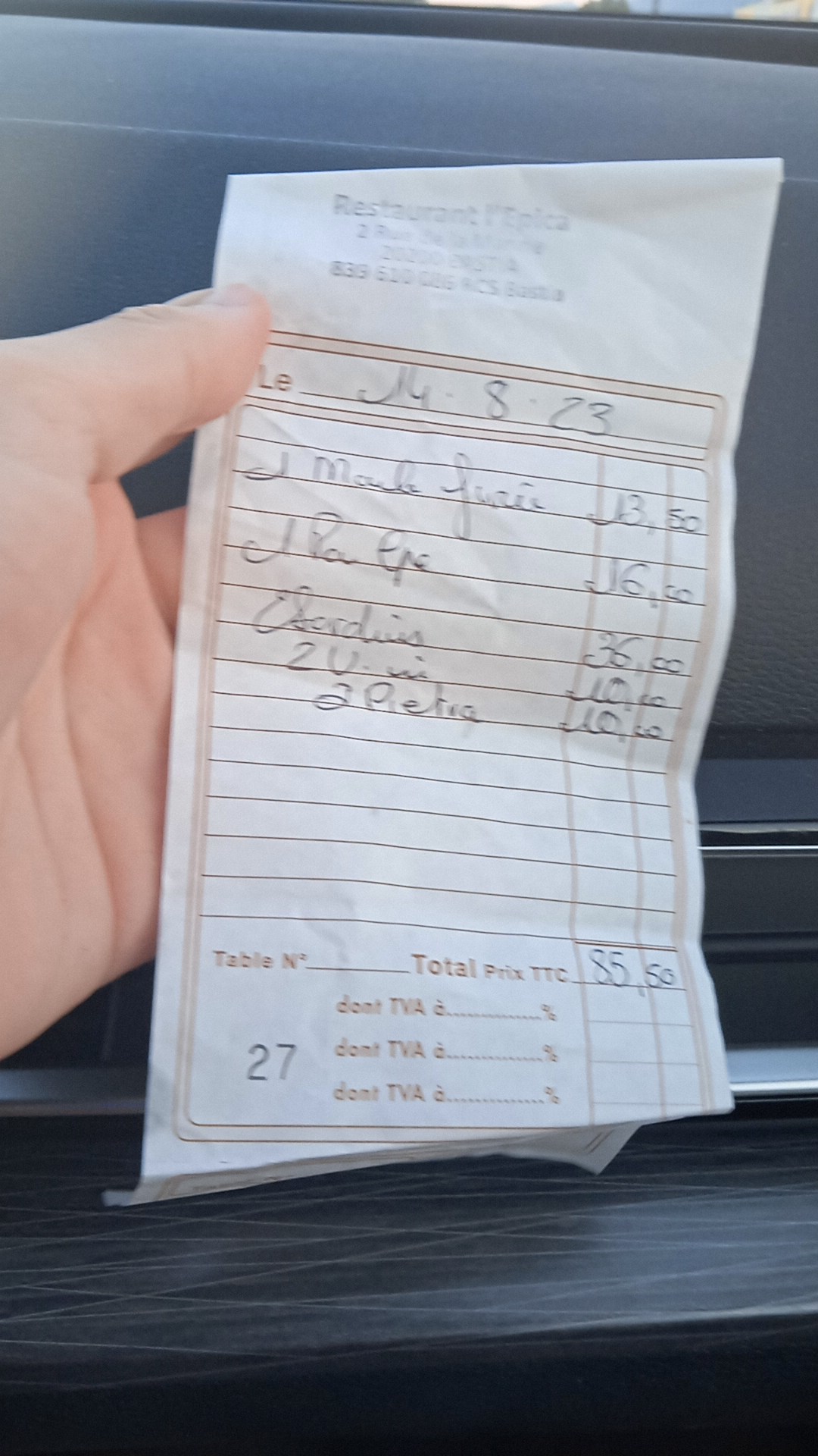 Merci pour ce merveilleux dîner dans votre petit restaurant. Nous avons apprécié la vue imprenable sur le port de Bastia tout en dégustant votre délicieux repas. L'Epica est géré par une famille et sert des plats spéciaux locaux que nous avons vraiment appréciés. Ne manquez pas la pêche du jour, les différentes possibilités d'entrées et les desserts corses - fabuleux. Le tout servi sans chichi, avec style et de bonnes explications sur la carte des plats. Vous pouvez prendre les options de vins de la maison, nous avons eu du rosé et du rouge et les deux étaient savoureux et pourraient convaincre ! Merci!!!!!!!!