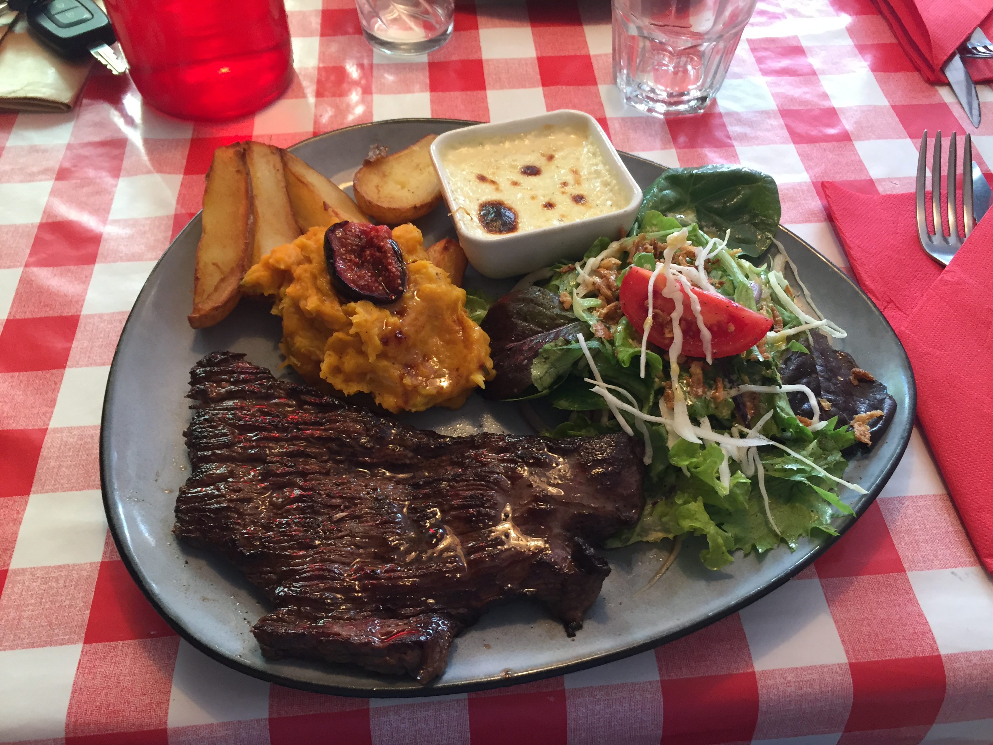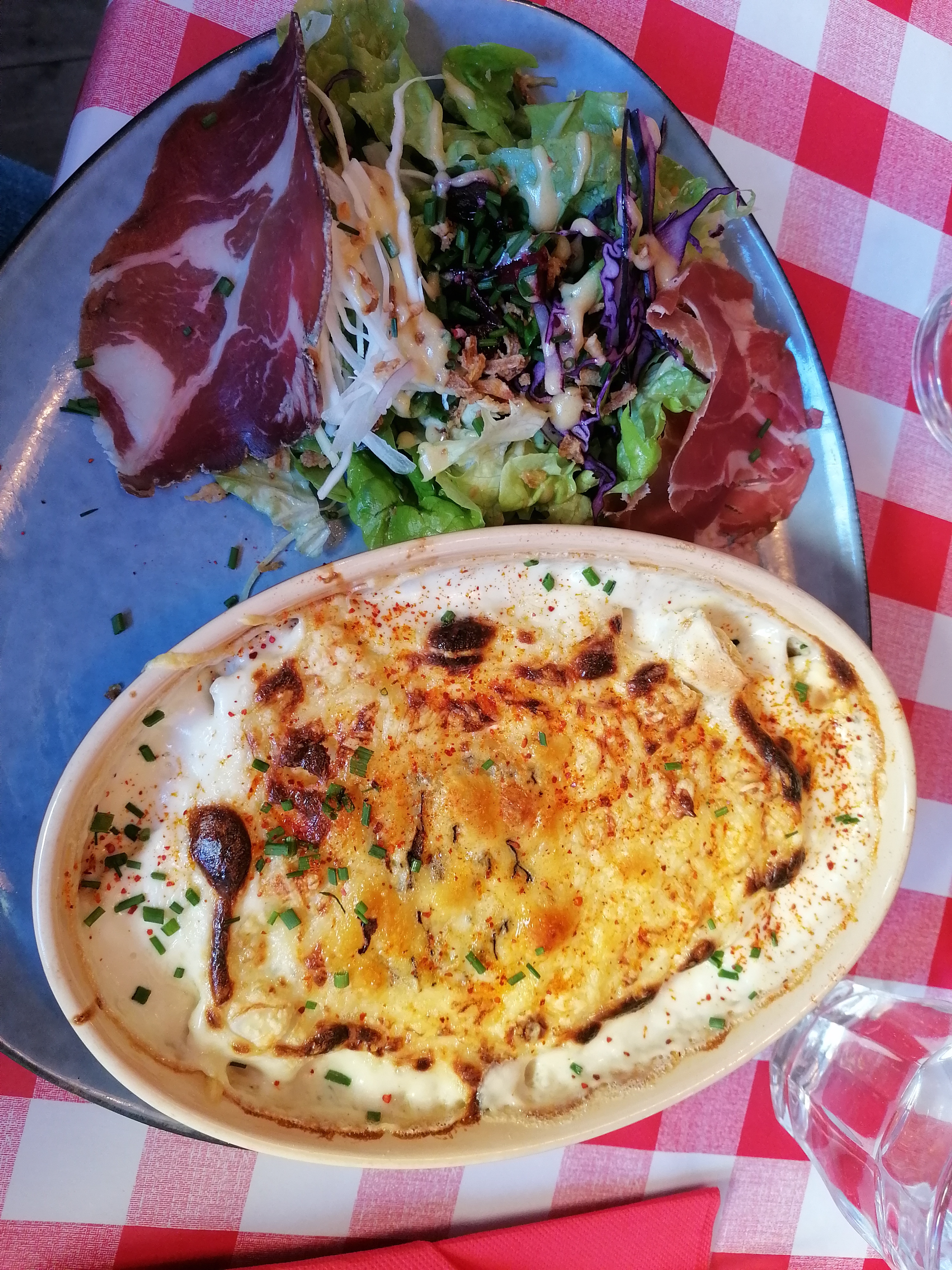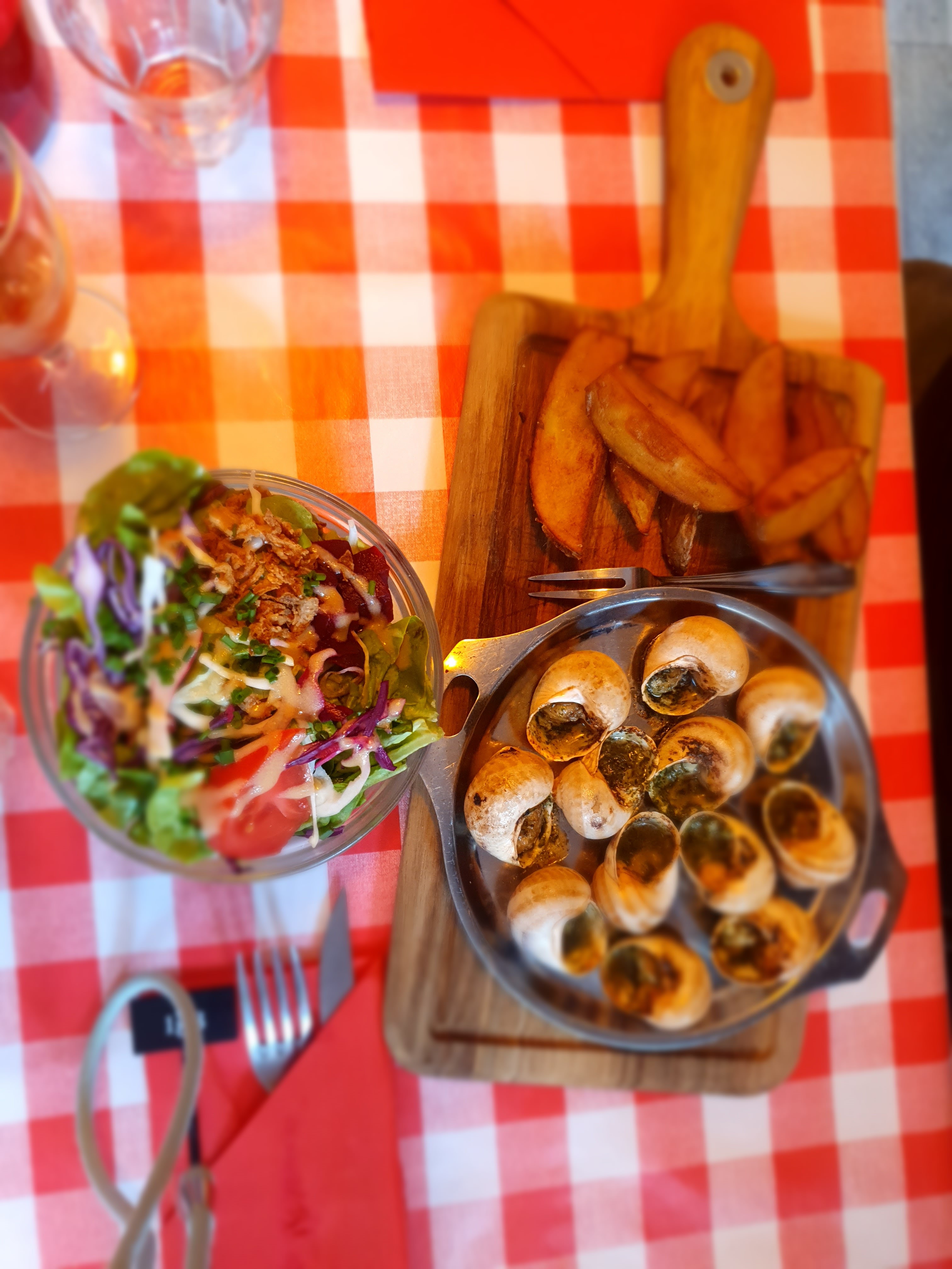 Cuisine absolument délicieuse, service tout à fait charmant et ambiance chaleureuse, sur fond de nappes à carreaux !