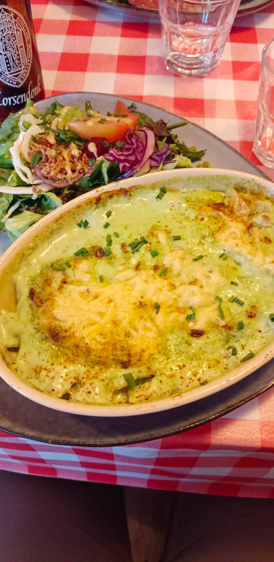 Un gratin de ravioles aux trompettes de la mort plus que délicieux je l'ai dévoré le service et personnel parfait 😀